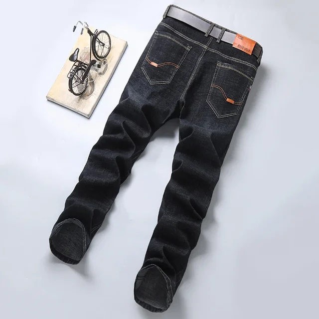 Korean Style Men’s Jeans Thickened Slim Fit High Waist Straight Leg Loose Fit Casual Plus Size