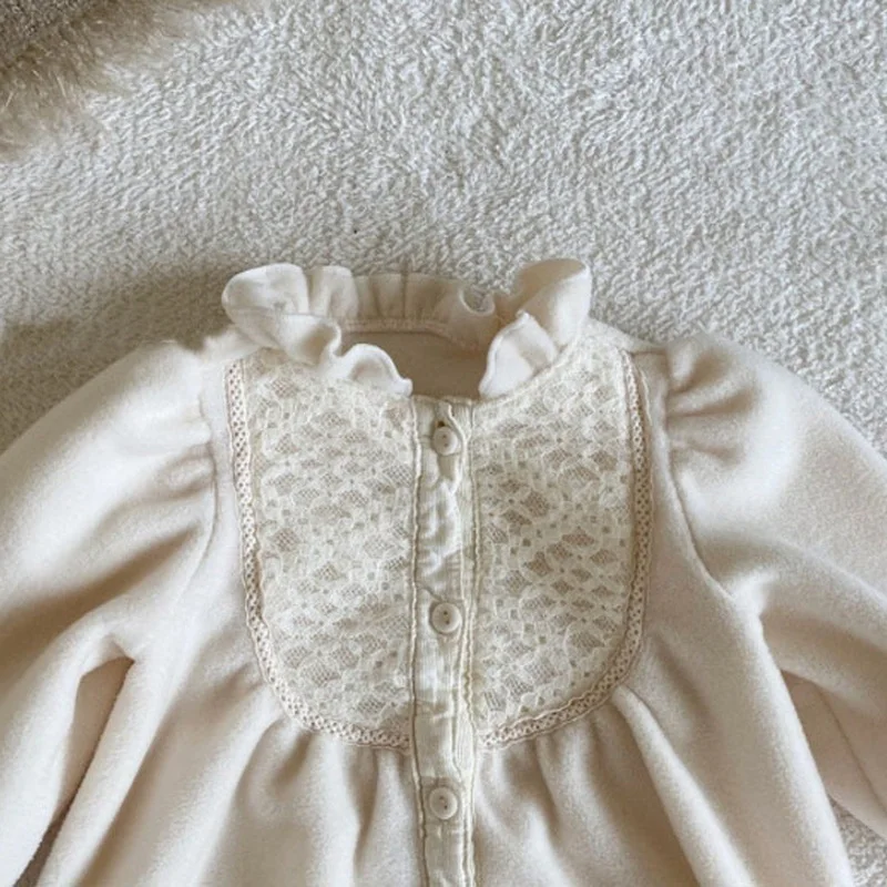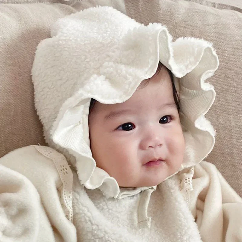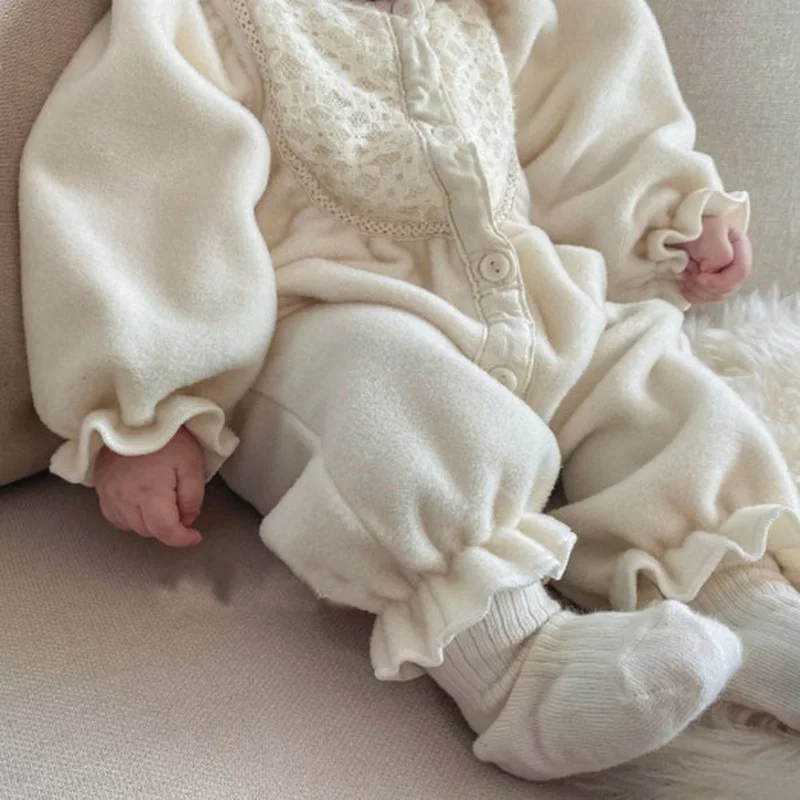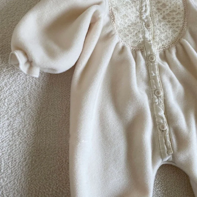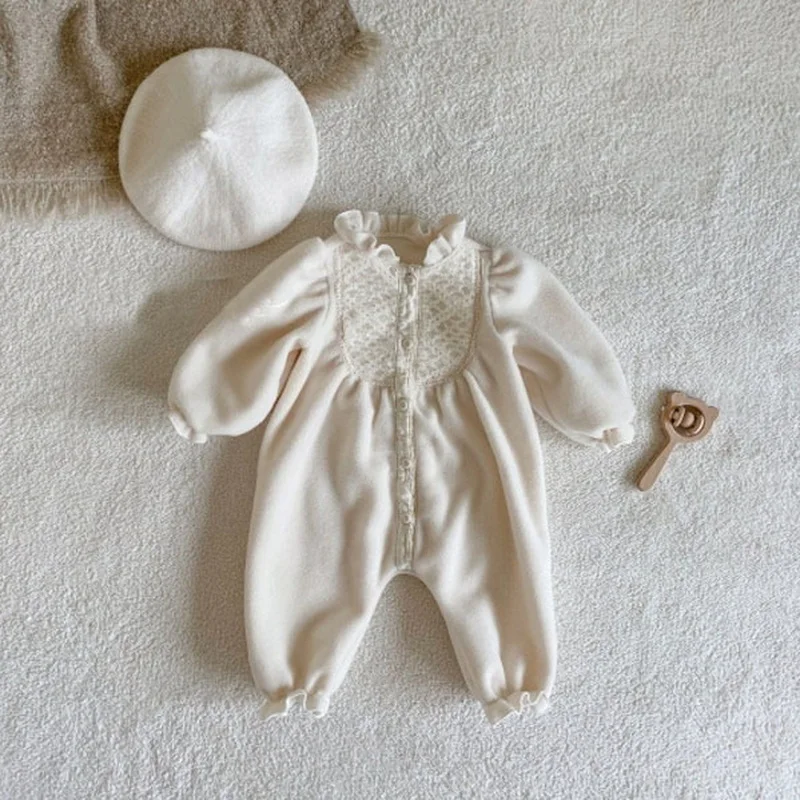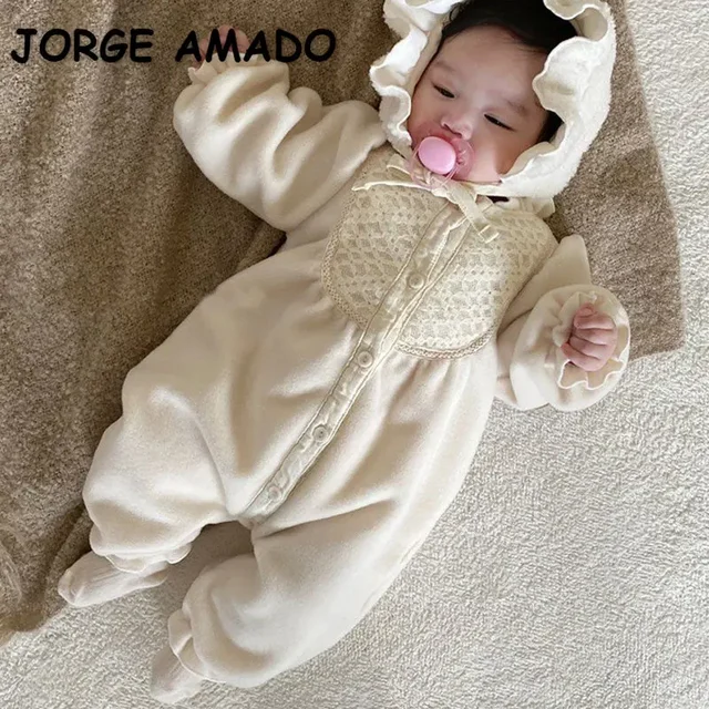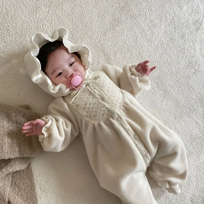 korean style New Autumn Clothes Baby Girl Romper beige Round Collar Long Sleeves Jumpsuit+Cap Newborn