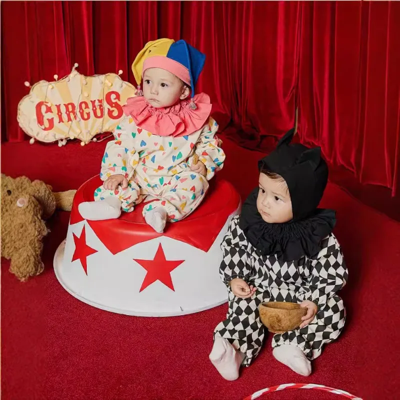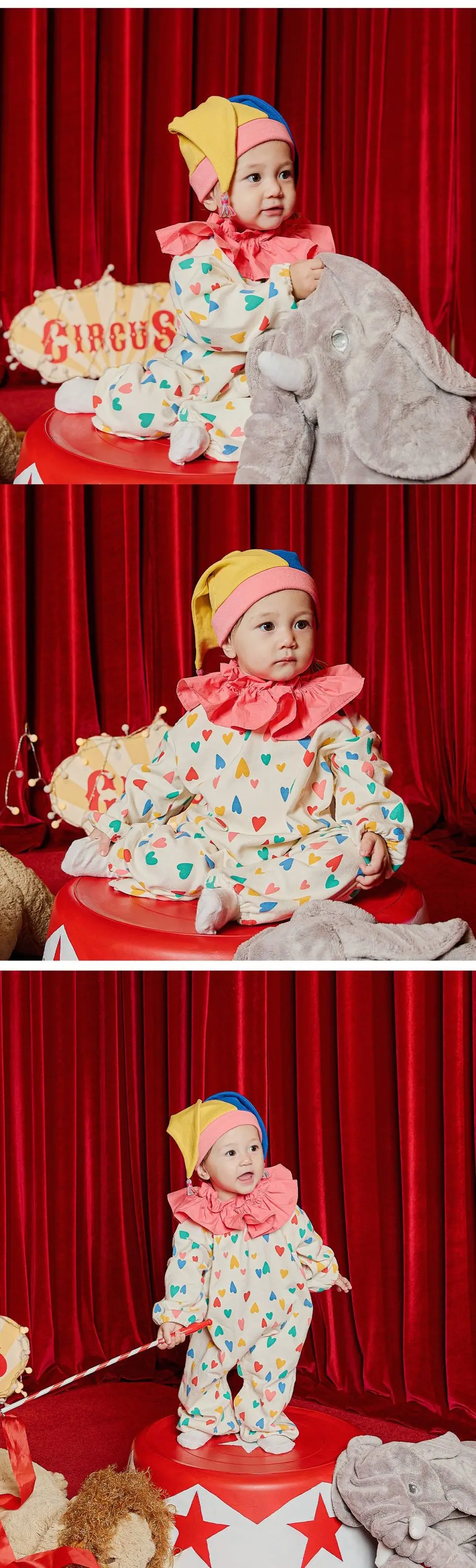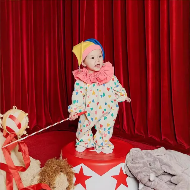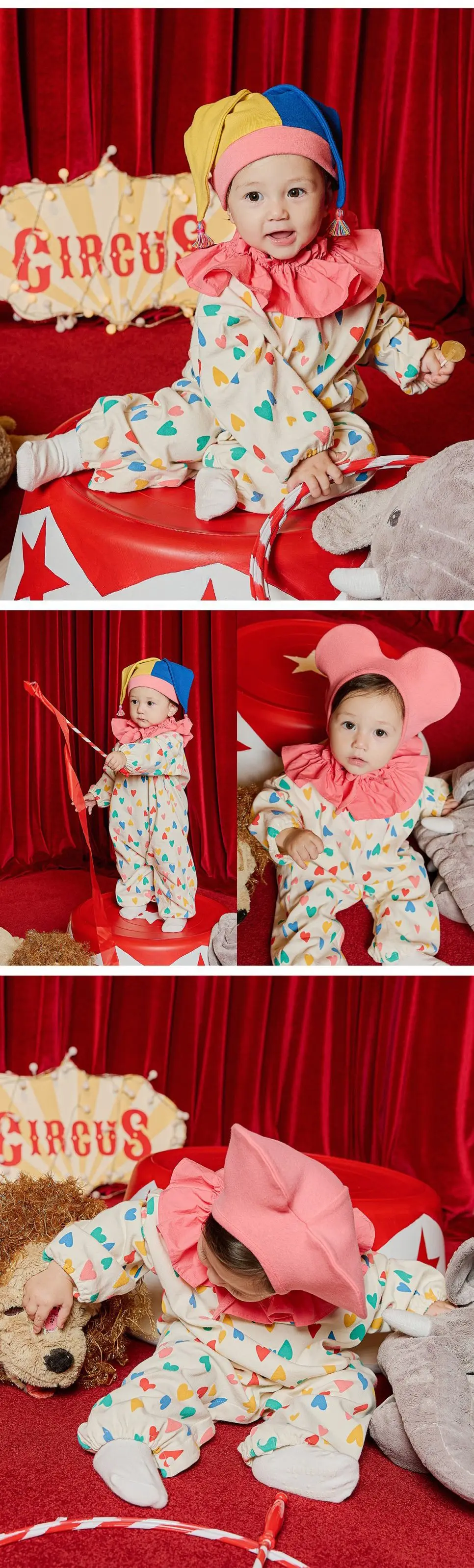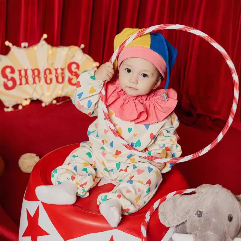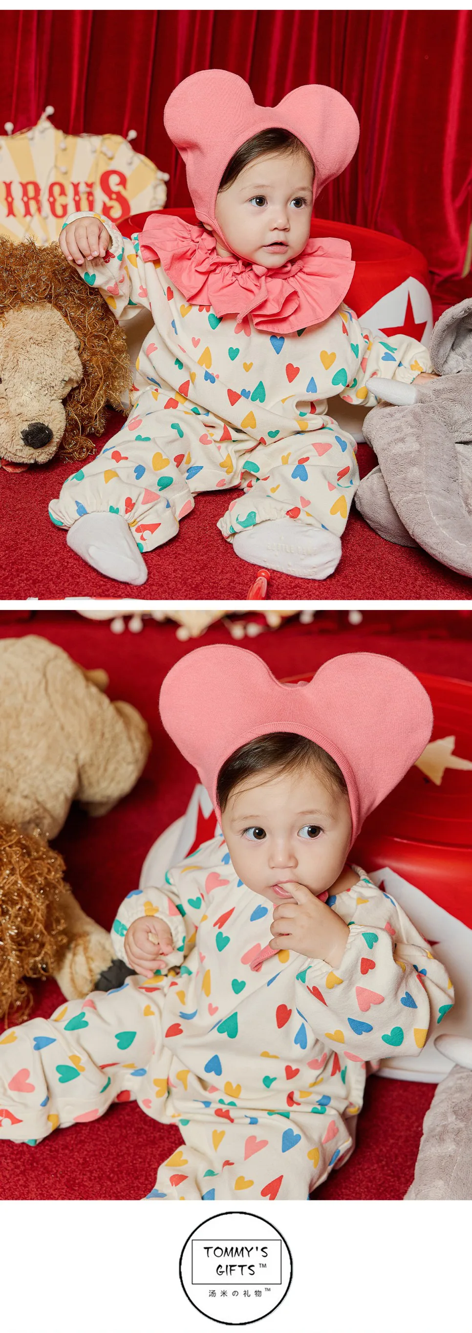 Korean Style New Spring Autumn Baby Girl Boy Costume Halloween Love Heart Long Sleeves Newborn Jumpsuit Colorful Joker Cap A1680