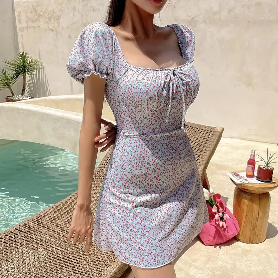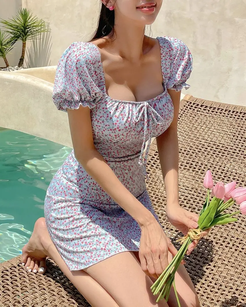Womens One Piece Swimsuit Tummy Control Bathing Suit Solid Swimwear Tie Knot 2025 Swim Dress Plus Size XL-5XL