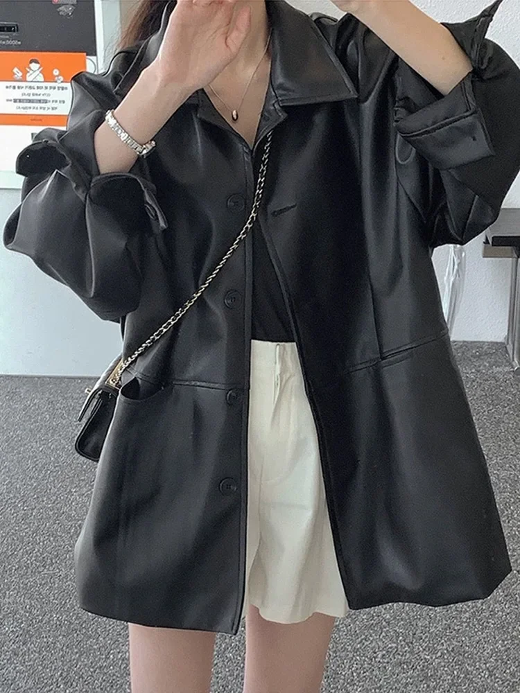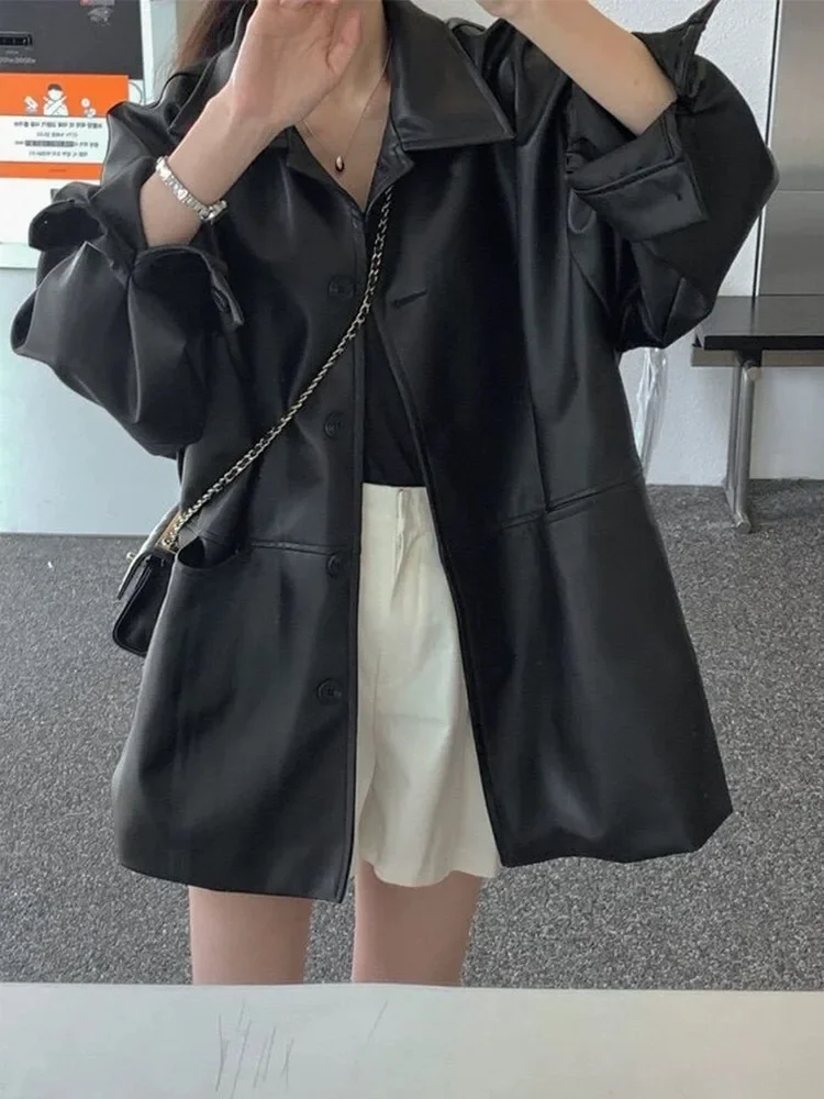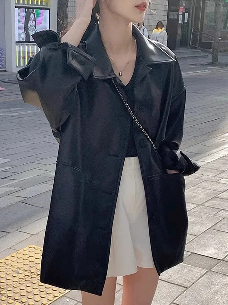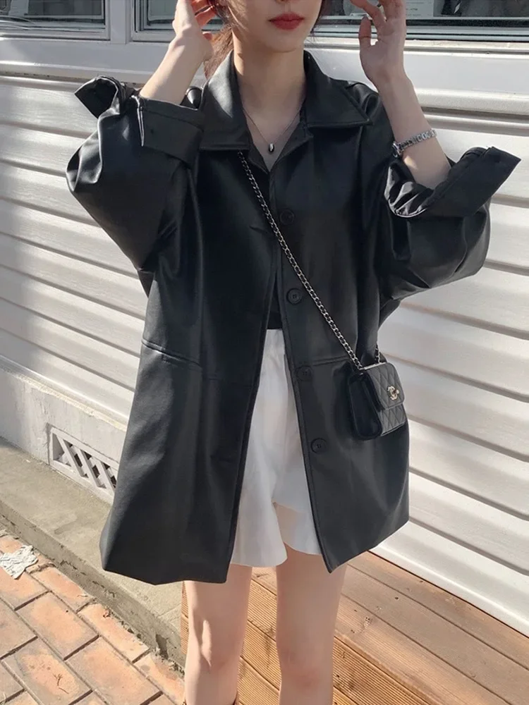 • Single-breasted Design : The single-breasted design of this leather jacket adds a touch of sophistication, making it a versatile piece for any outfit.