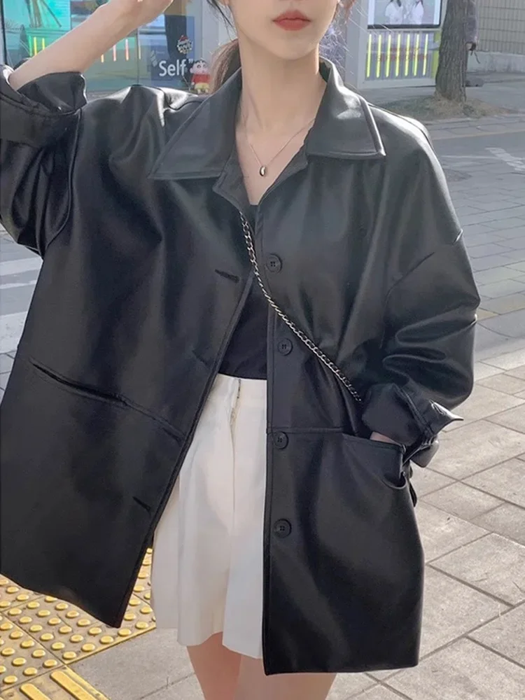 • Imitation Leather Material : Crafted from high-quality imitation leather, this jacket offers durability and a luxurious feel without the high cost of genuine leather.
