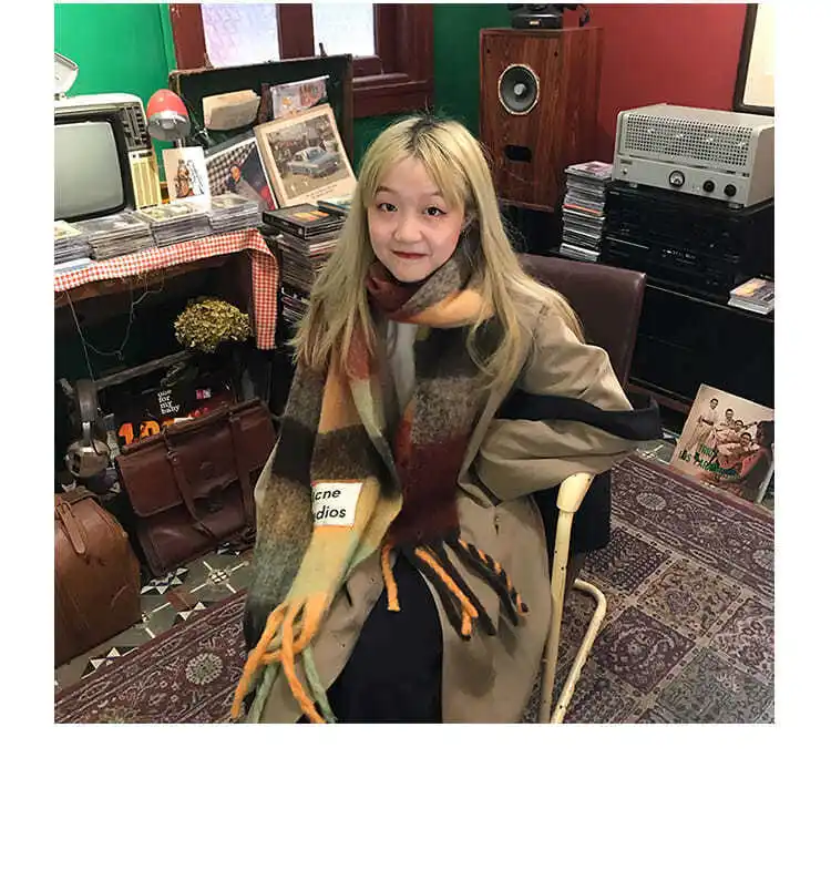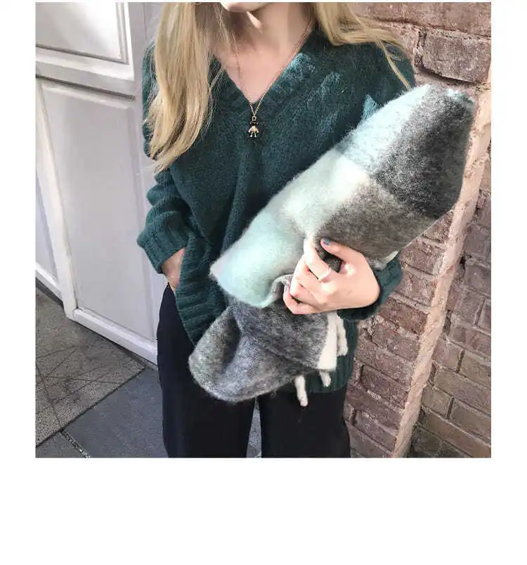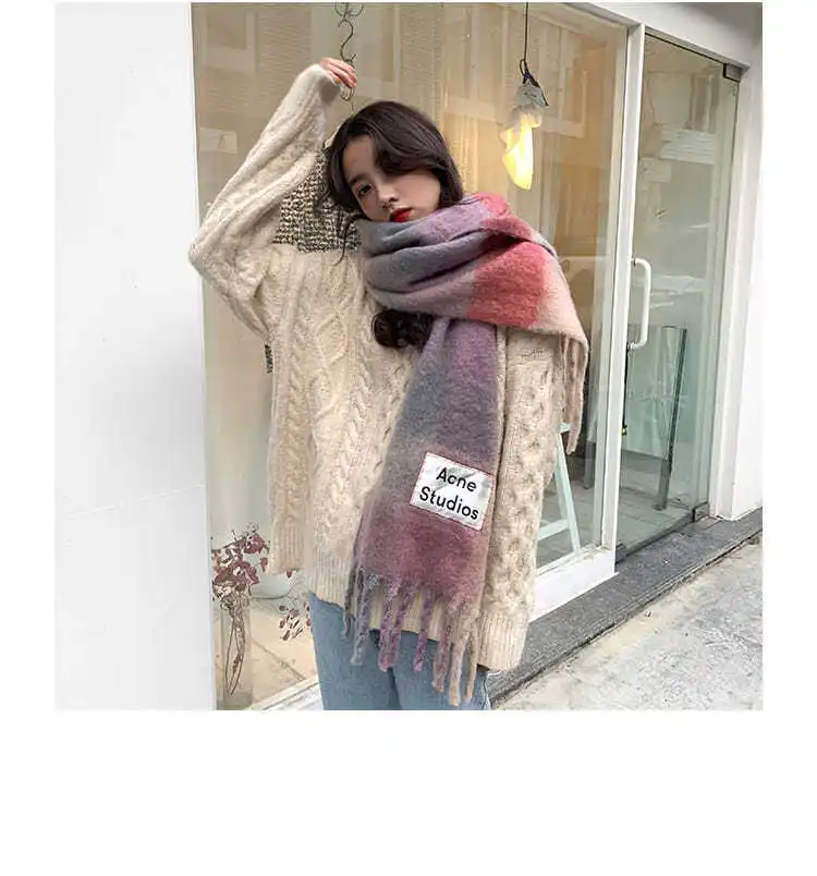 2025 new double-sided imitation cashmere scarf presbyopia scarf warm fringed shawl