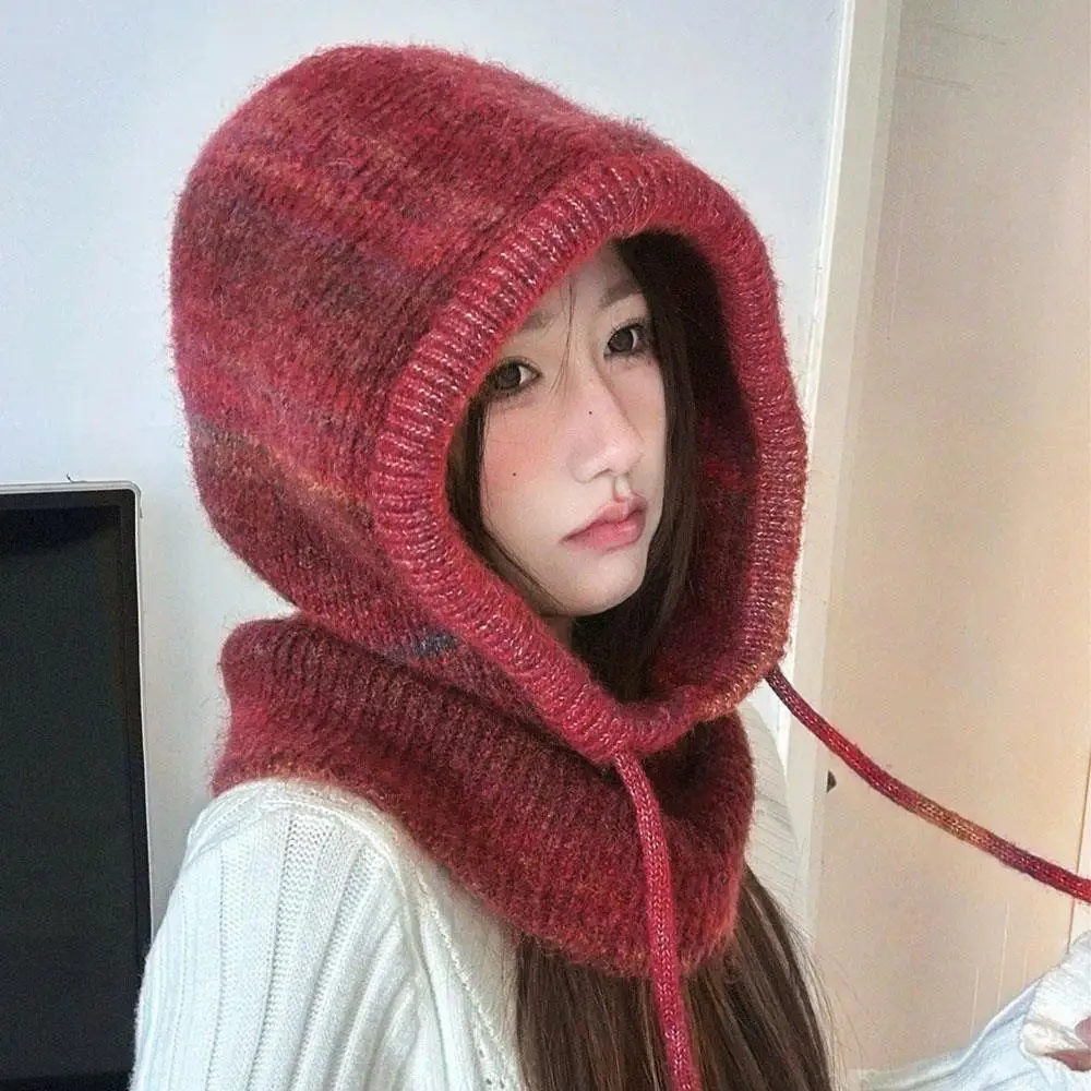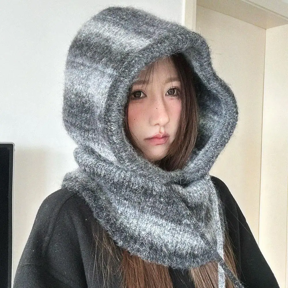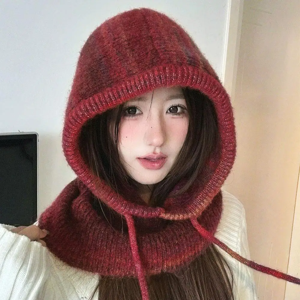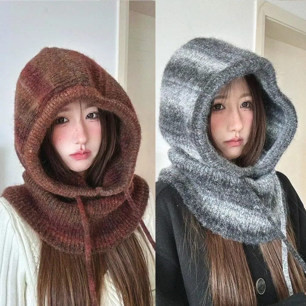 Ear Face Neck Protect One-Piece Scarf Hat Hooded Neck Warmer Beanies Windproof Pullover Hat Unisex Wool Knitted Balaclava Cap