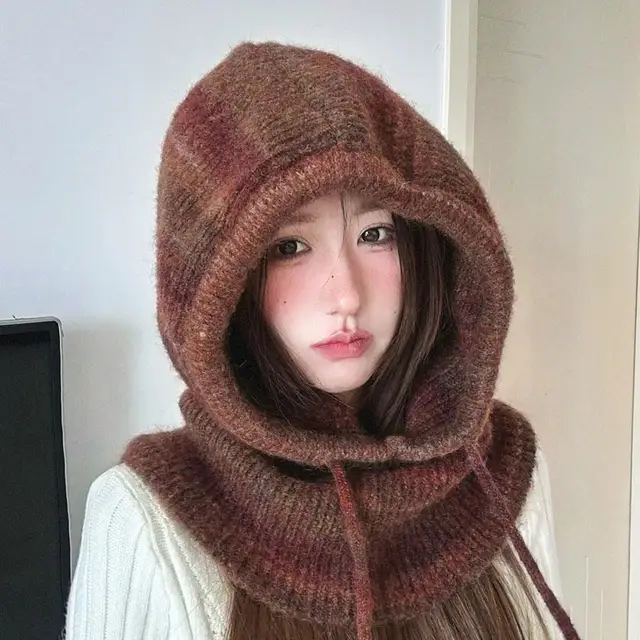 Ear Face Neck Protect One-Piece Scarf Hat Hooded Neck Warmer Beanies Windproof Pullover Hat Unisex Wool Knitted Balaclava Cap