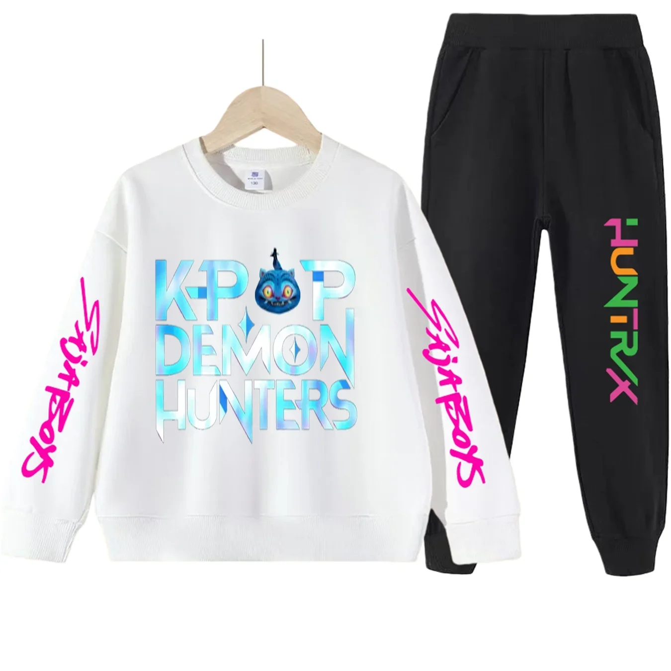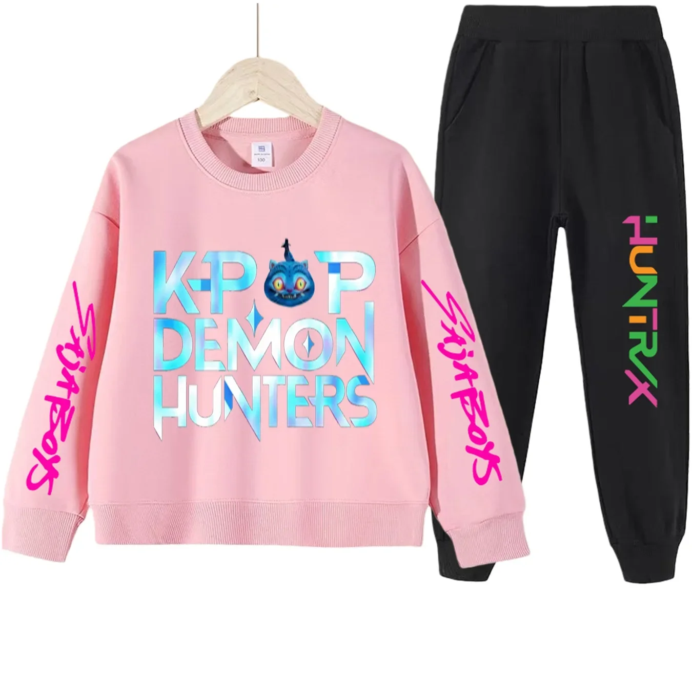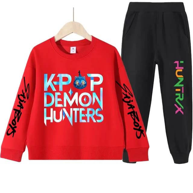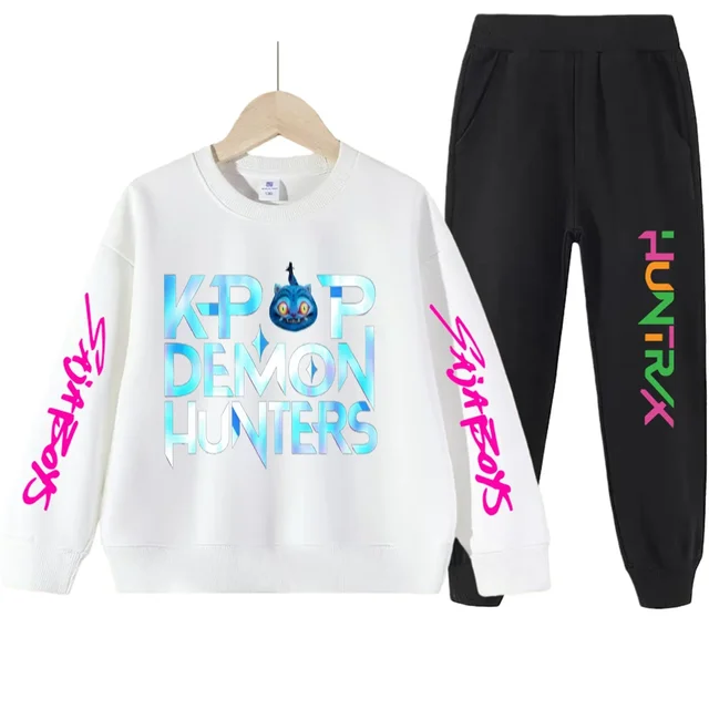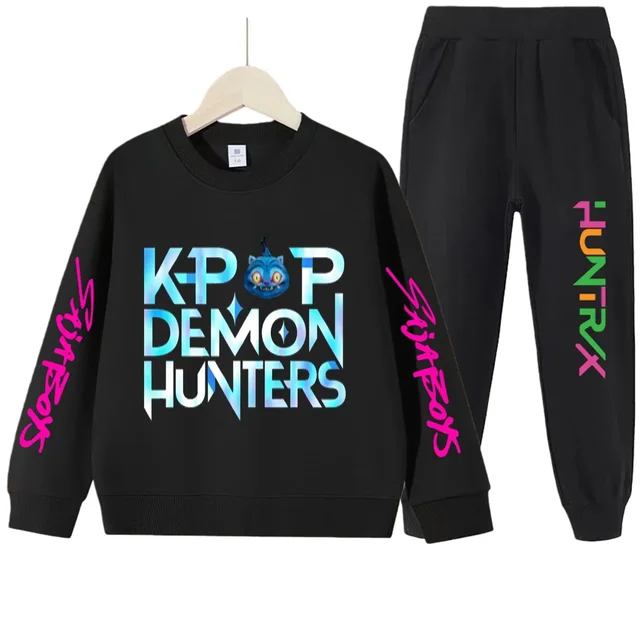 kpop demon hunters Kids sets Boys’ Stylish Hunter Witch Gang Print Tracksuit