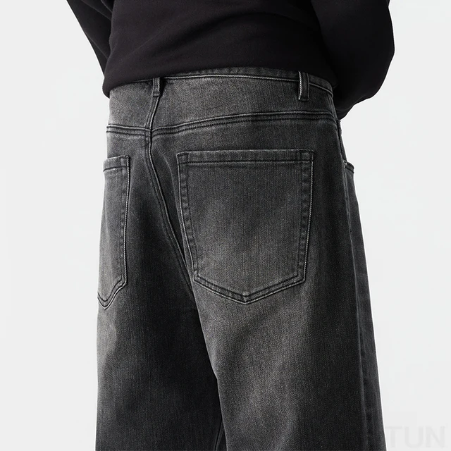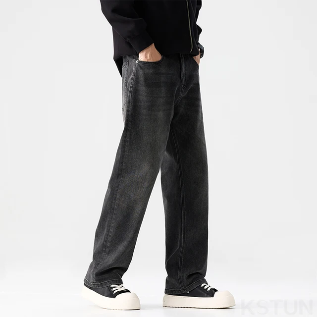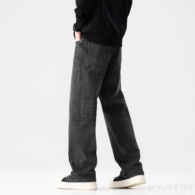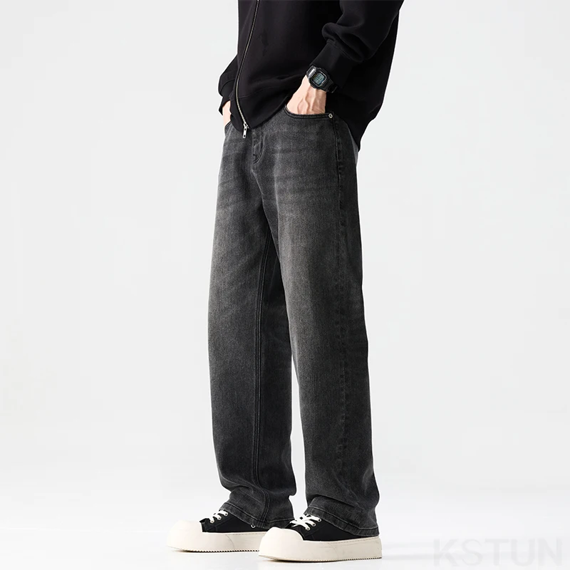 KSTUN 2025 Autumn Men’s Loose Jeans Wide Leg Man Denim Pants Dark Grey Stretch High Quality Brand