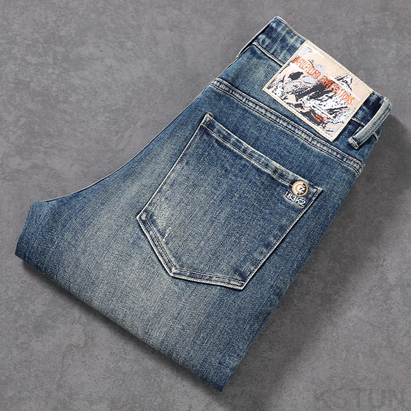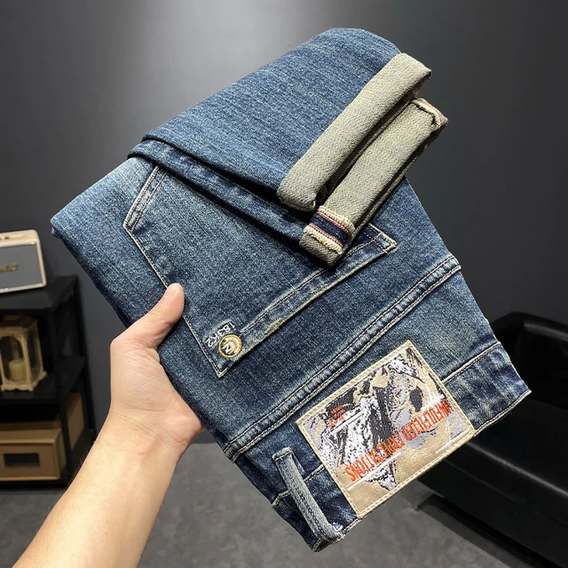 New Men Light Luxury Stretch Slim Fit Pants Comfortable Soft Business Fashion Straight Casual Denim Trousers Male Brand Clothing