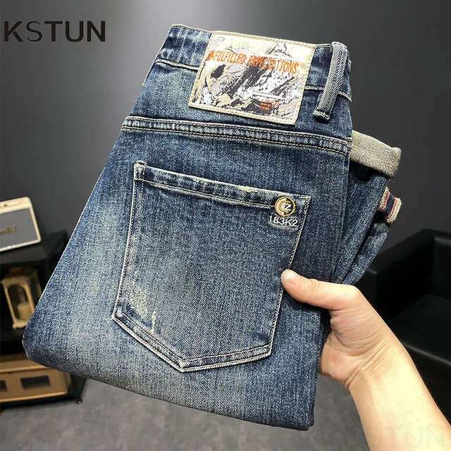 KSTUN Men’s Jeans Stretch Slim Straight 2025 Spring and Autumn Streetwear Casual Men Denim Pants