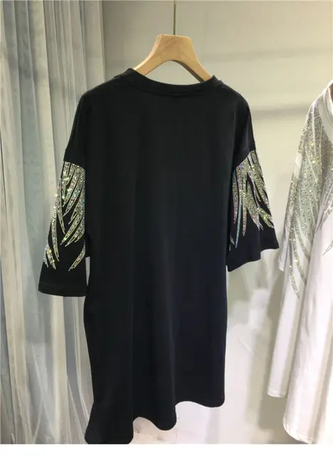 150kg Plus Size Diamond-studded Women's Cotton T-shirt L-4XL Thick Crown Print 2024 New Female Tees Fashion Spring Summer Tops