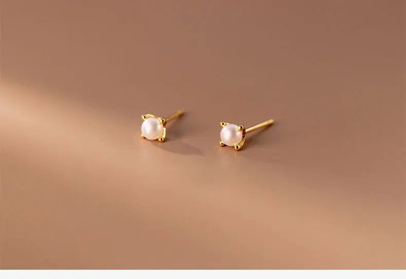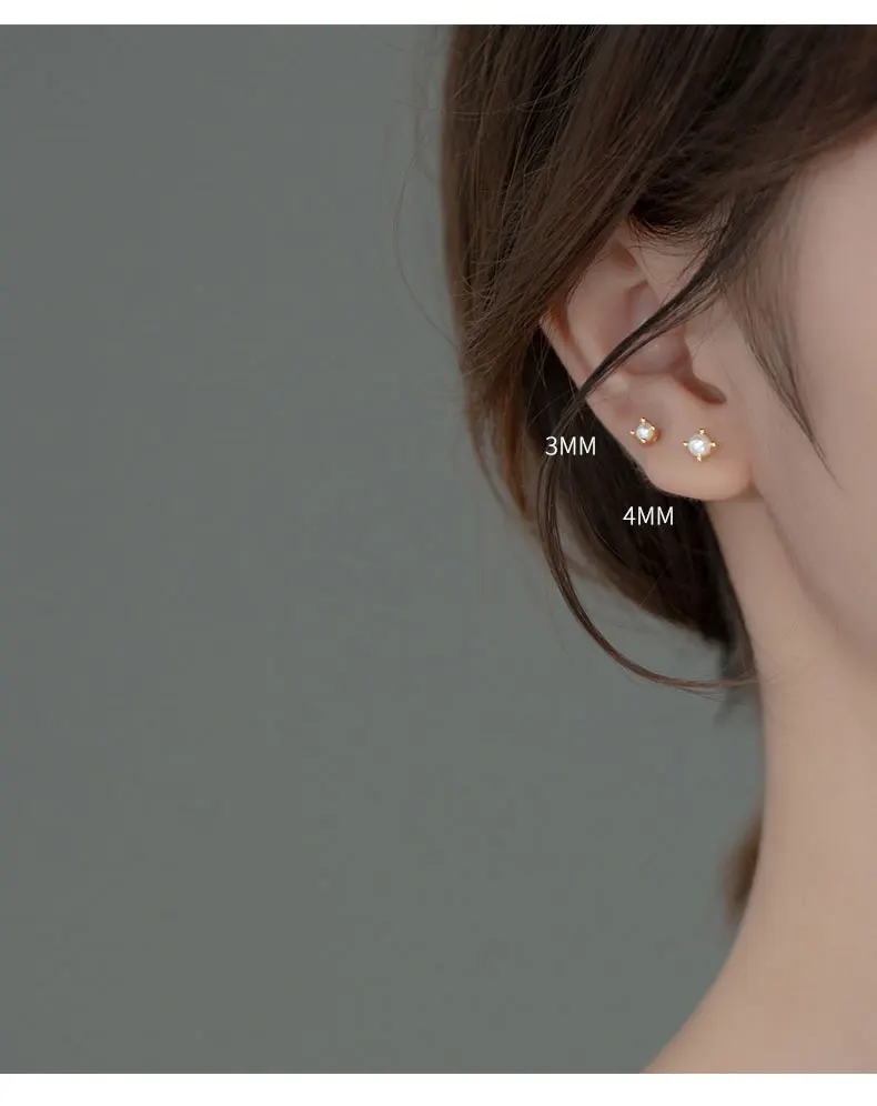La Monada Tiny Stud Earrings 925 Sterling Silver 925 Small Fake Pearl Silver Earrings For Women Silver Pierced Girls Student