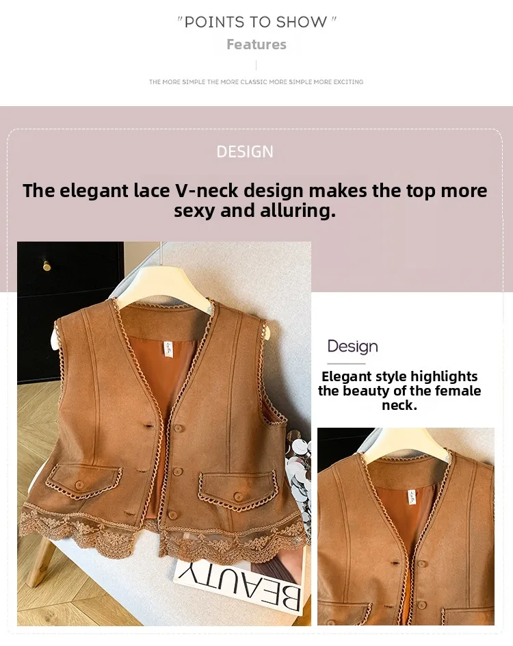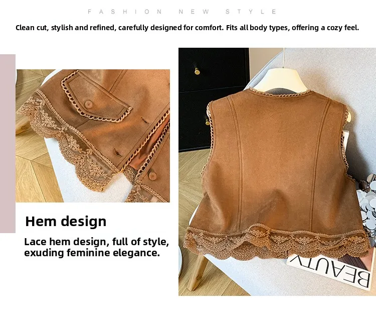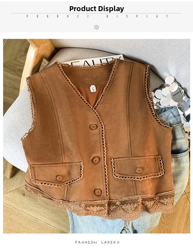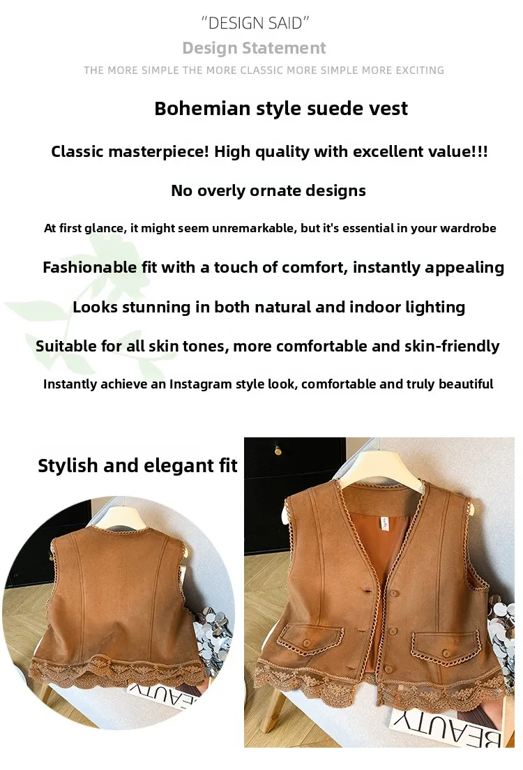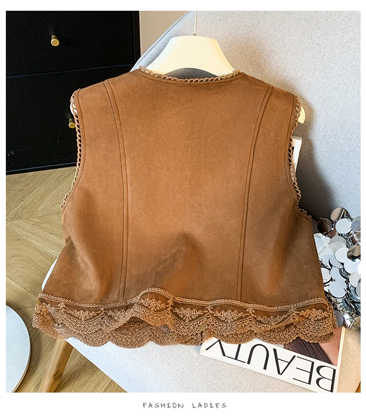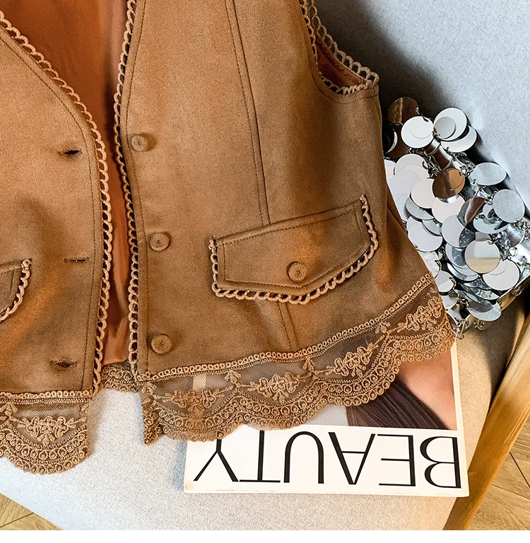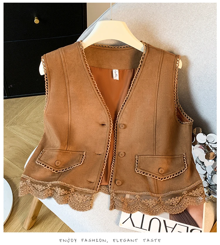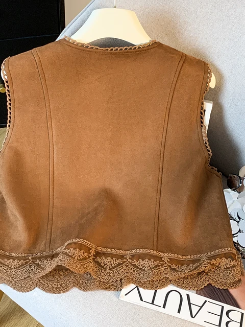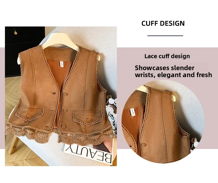 The vest boasts an exquisite lace patchwork design, adding a touch of elegance and sophistication to your look.