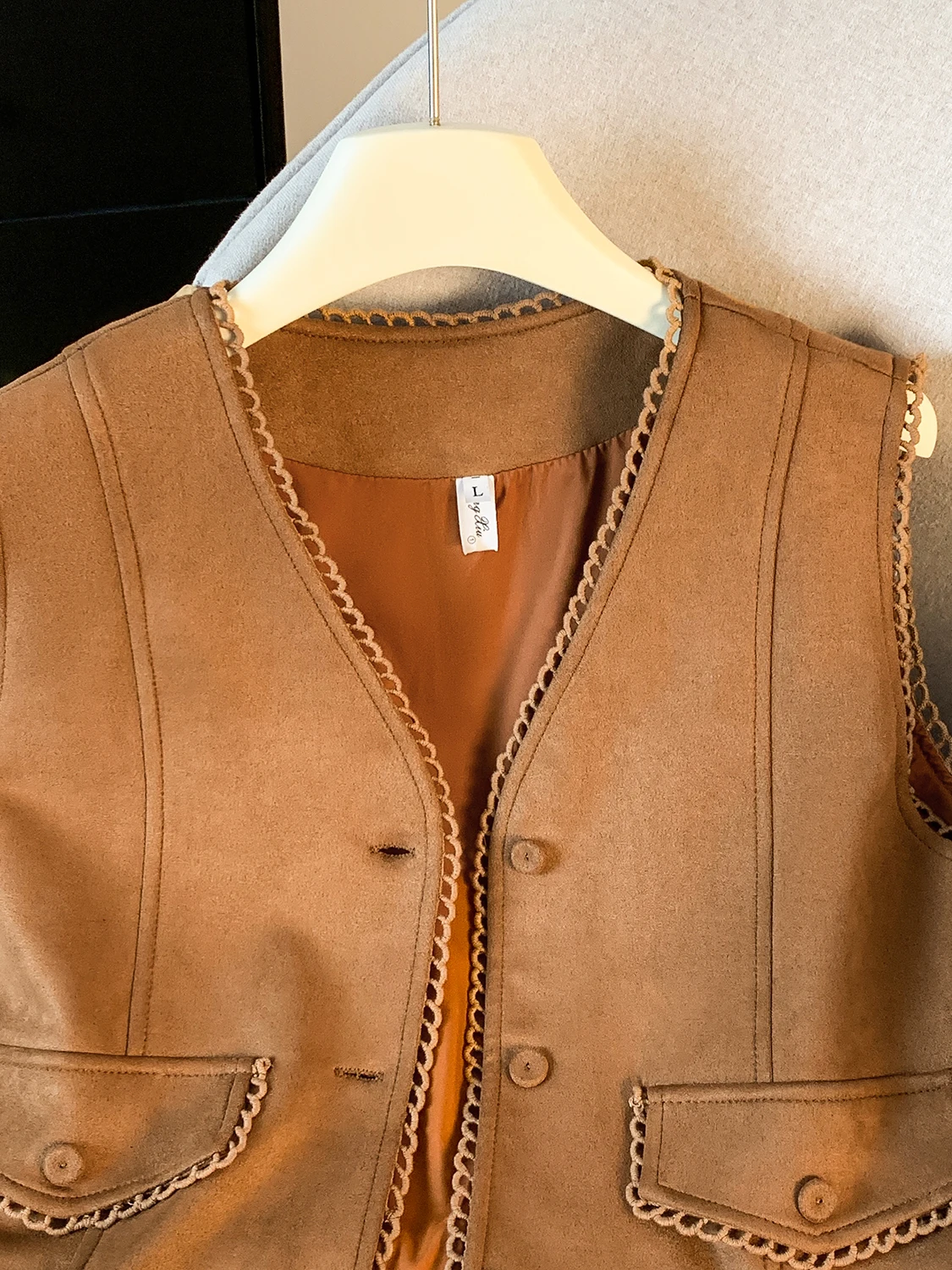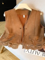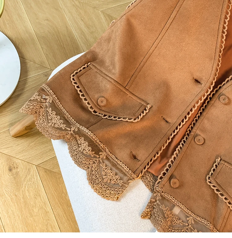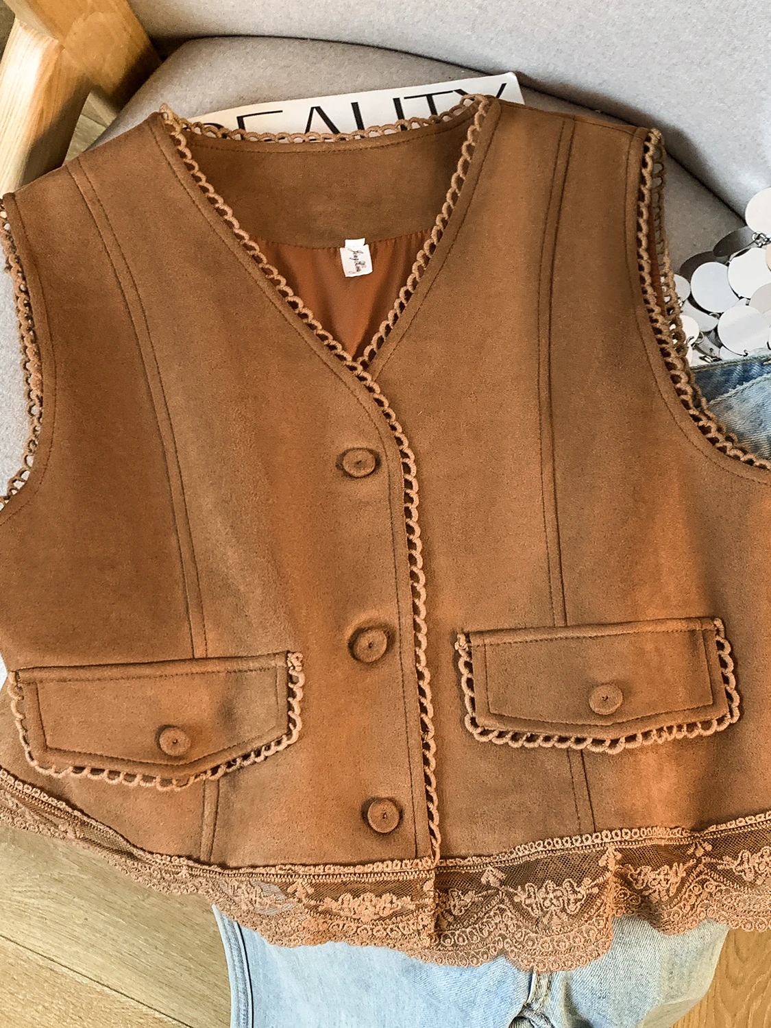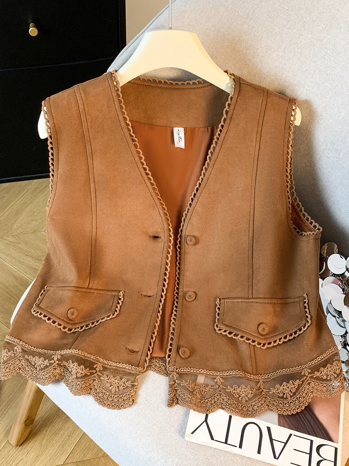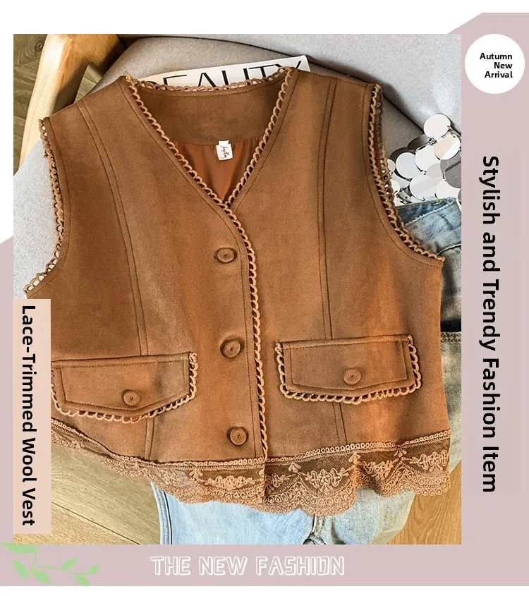 The vest boasts an exquisite lace patchwork design, adding a touch of elegance and sophistication to your look.