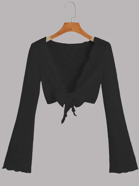 Chic V-Ne Bubble Sve Loose Knitted Open Cardigan Sweater Women's Autumn Winter Simple Lazy Sle Polyester Fiber Long Sl...