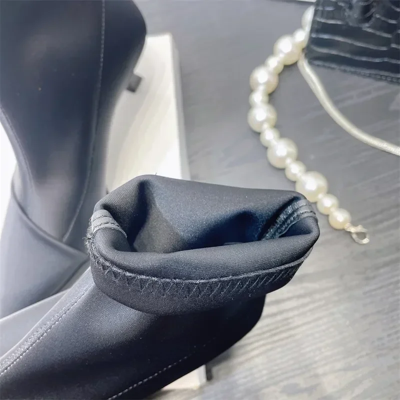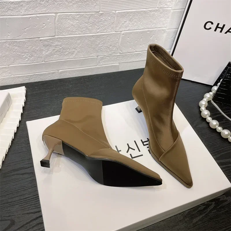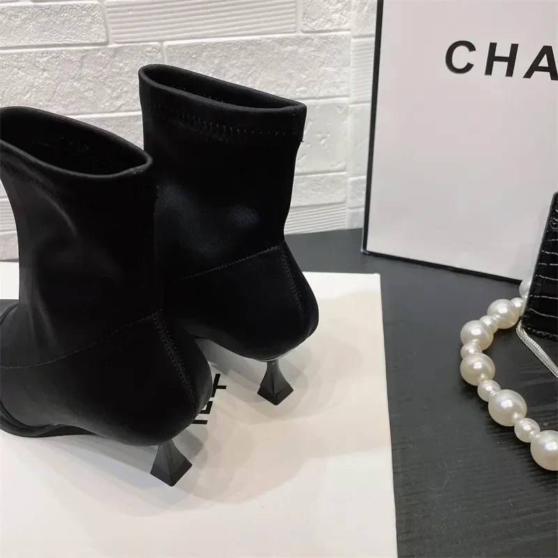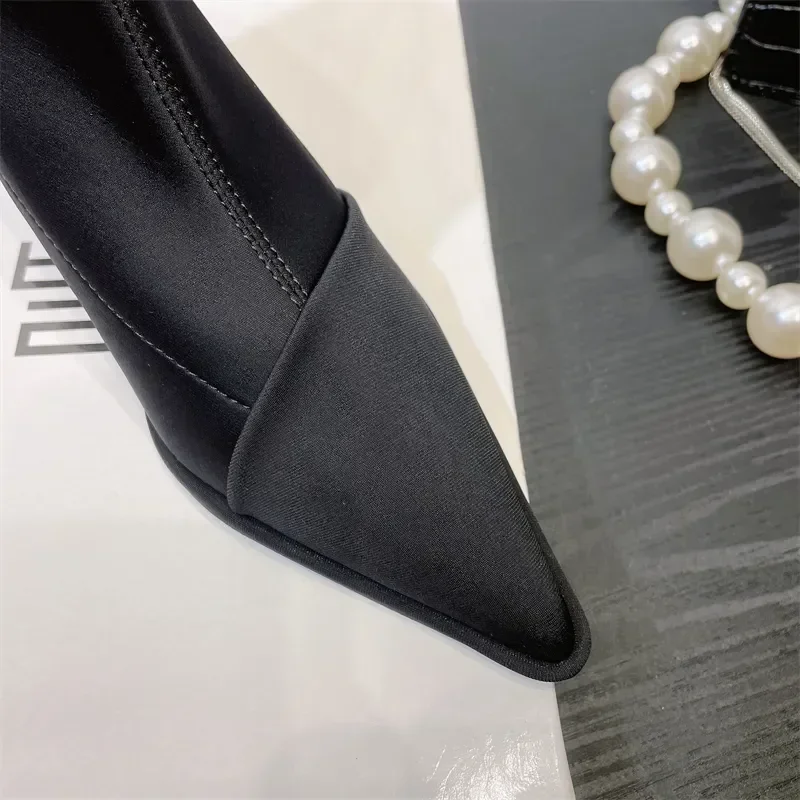 Ladies Shoes Elegant High Thin Heel New Satin Pointed Toe Short Boots Women Stretchce Temperament Ankle