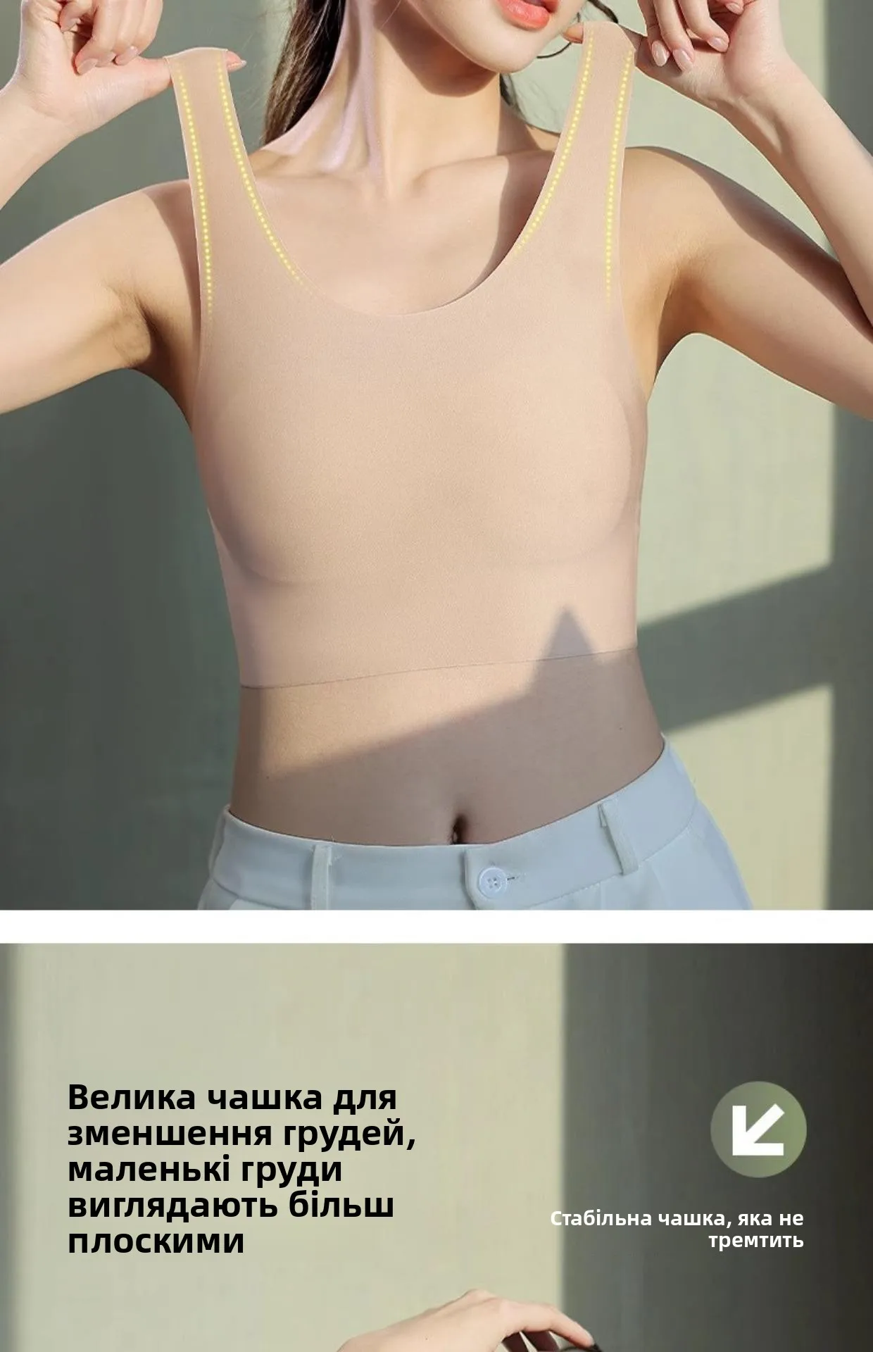 The fixed double strap design offers secure support, preventing breast sagging and providing a flattering shape.