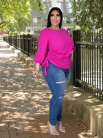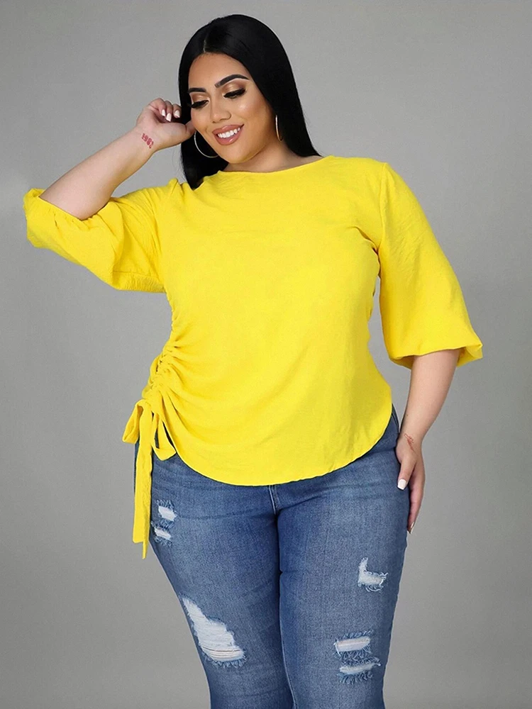 Plus Size Women's Blouses Front Knotted V Neck Blouse T Shirt Short Sleeve Oversized Tunic Tops Basic Summer Solid Tee Top
