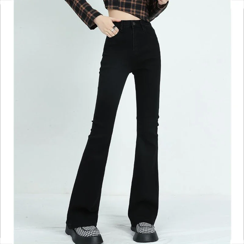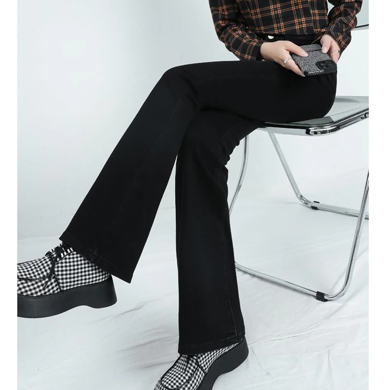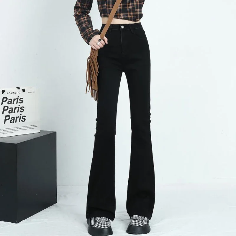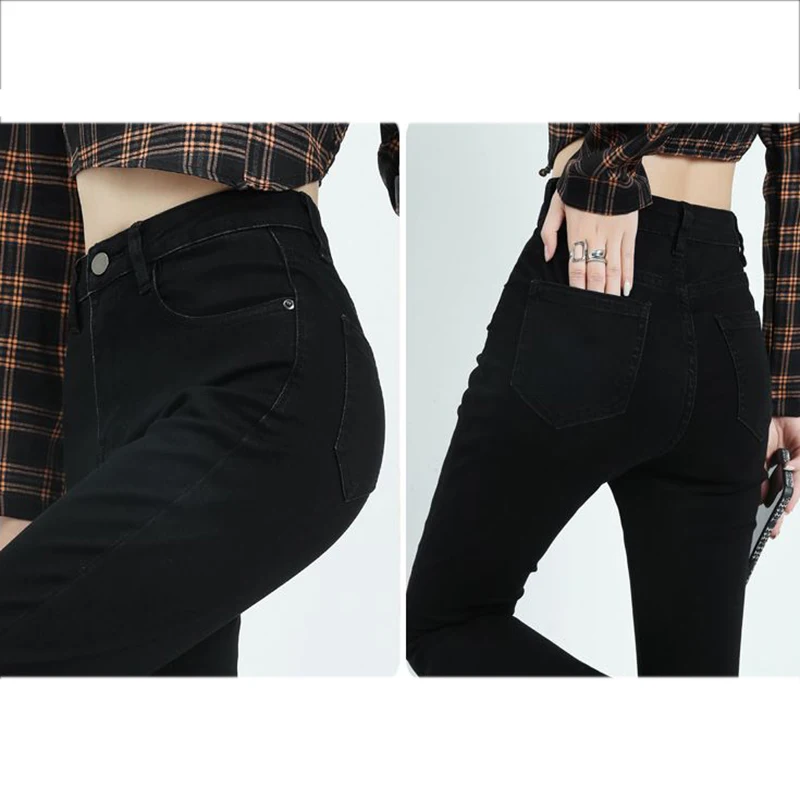 Winter Lady High Waist Solid Thermal Jeans Girls Snow Warm Casual Fleece Denim Pants Female Classic Daily Plush Trousers