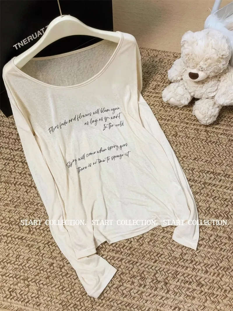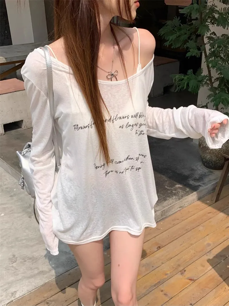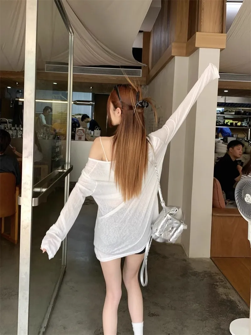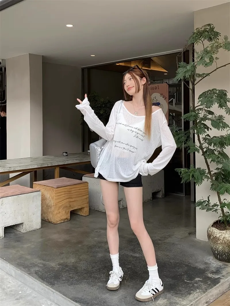 Laid-ba Sle Long Sve Loose Casual Thin Women's T-irt Summer Slimming Versatile Sun Protection Top oulder-baring Pr...