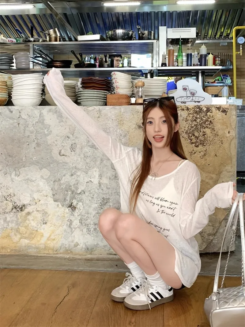 Laid-ba Sle Long Sve Loose Casual Thin Women’s T-irt Summer Slimming Versatile Sun Protection Top