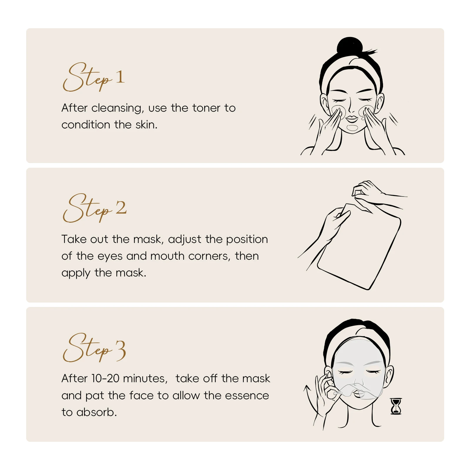 Cleanse skin → 2. Apply mask → 3. Relax 15 mins → 4. Pat essence in (no rinse!).
