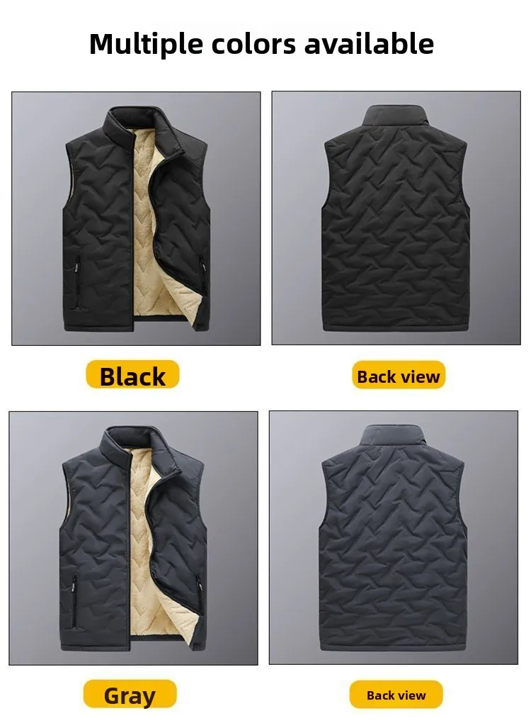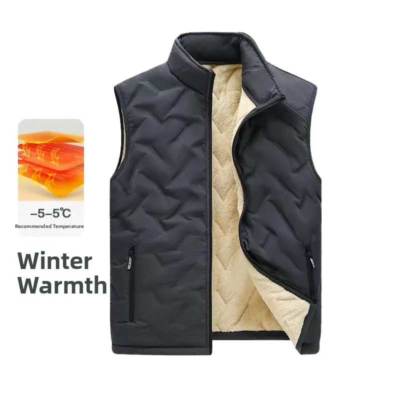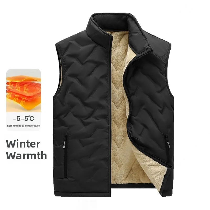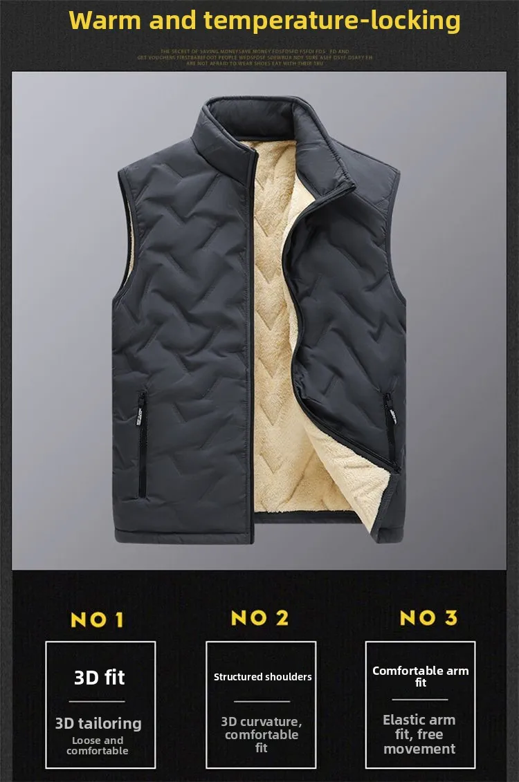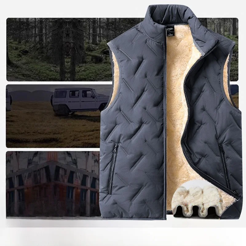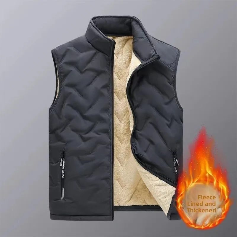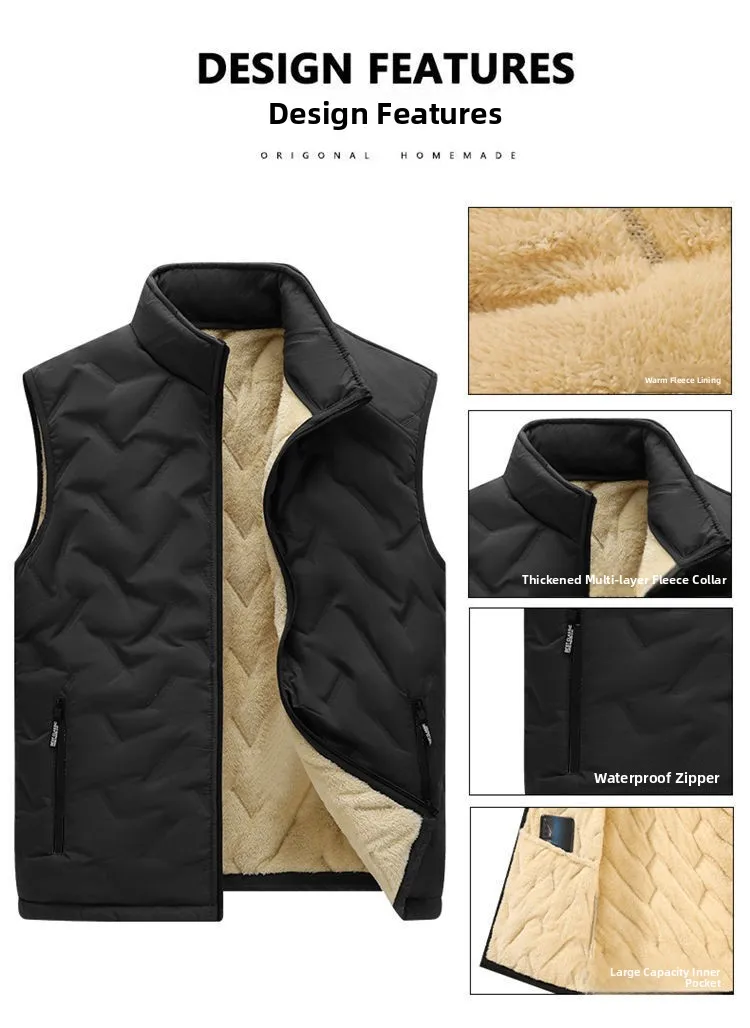 The vest features a thickened fleece lining, providing extra warmth during the colder months.