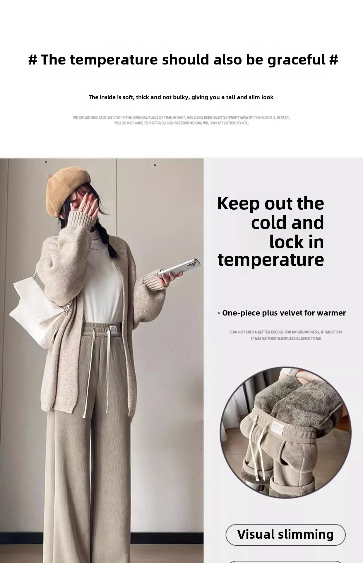 • Wide-leg Design : The wide-leg design offers a relaxed, lazy style that’s both comfortable and fashionable.