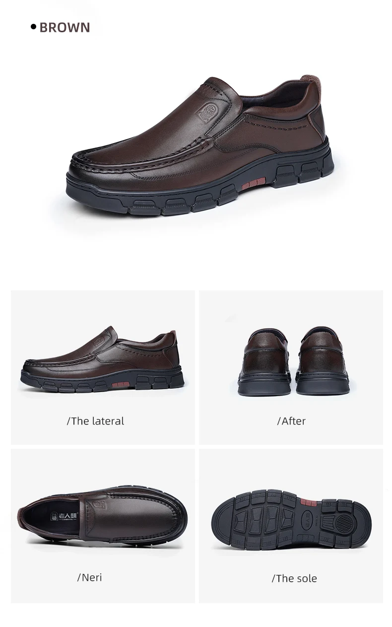 LAORENTOU genuine leather soft sole business leather shoes, men's cowhide breathable casual leather shoes, black/brown