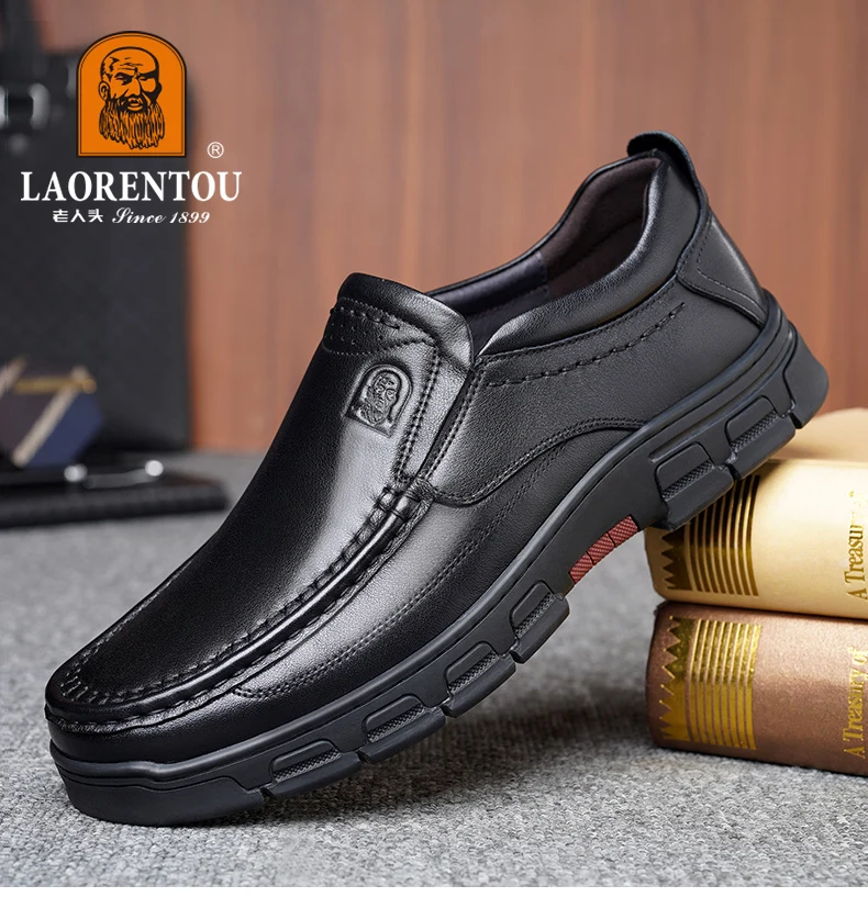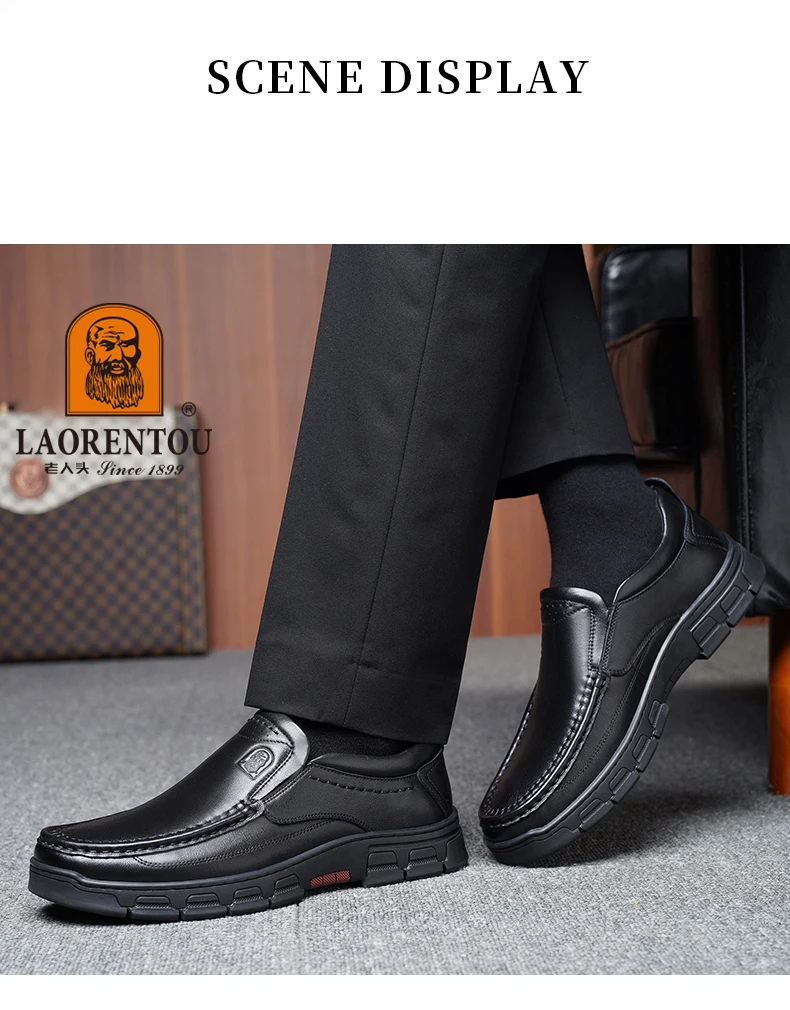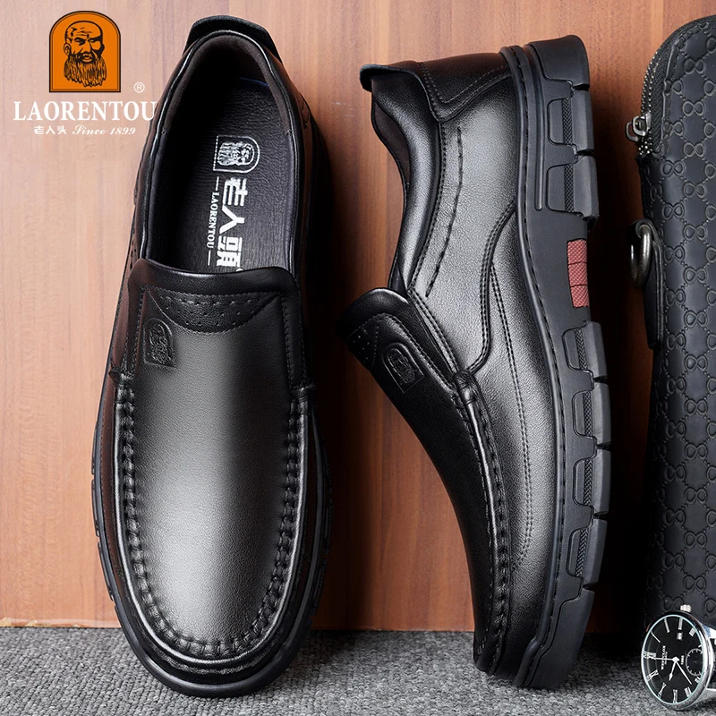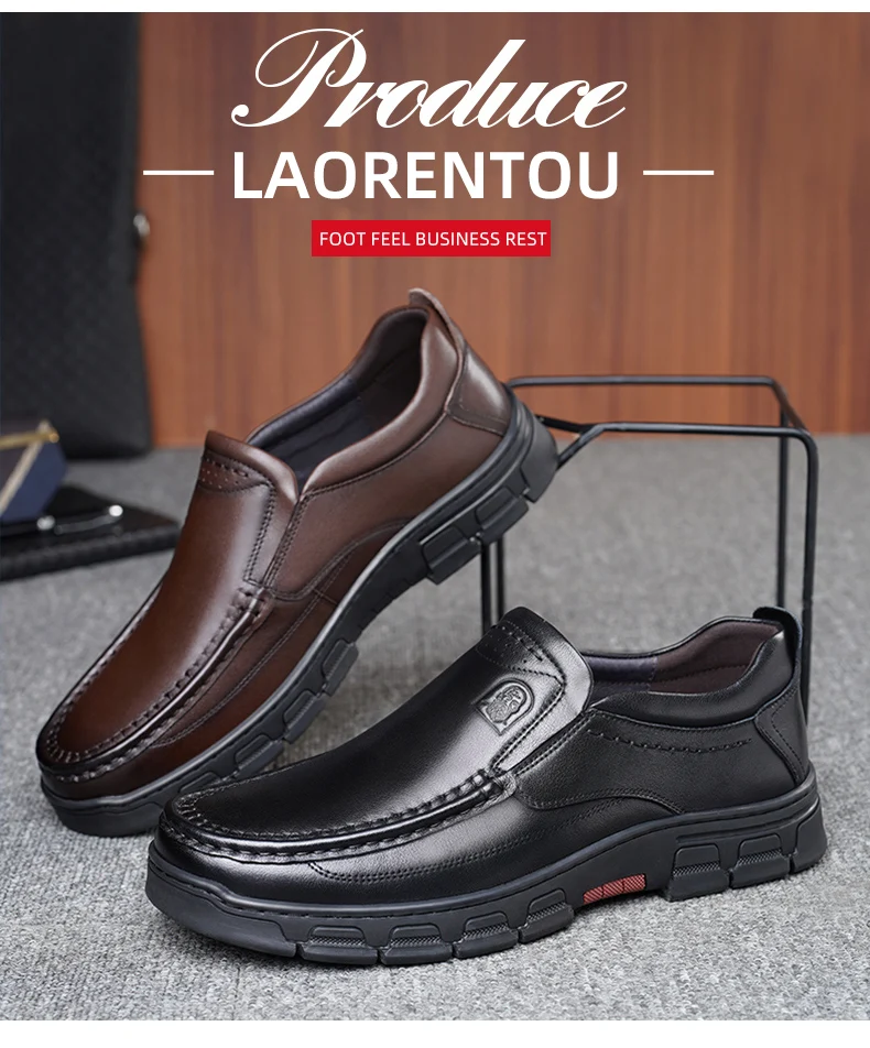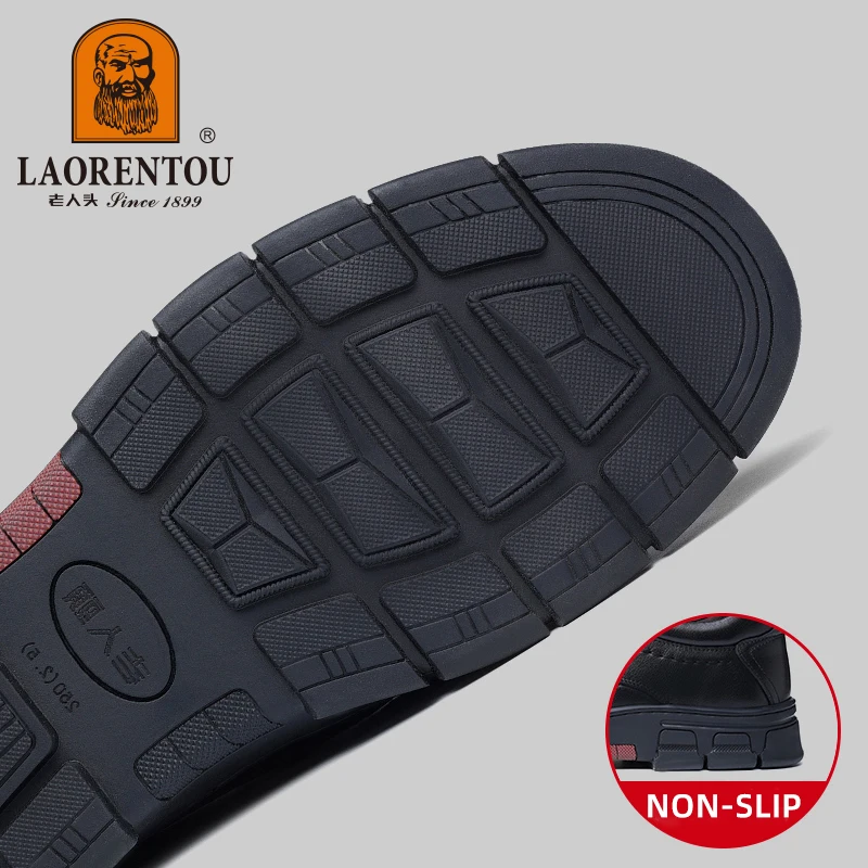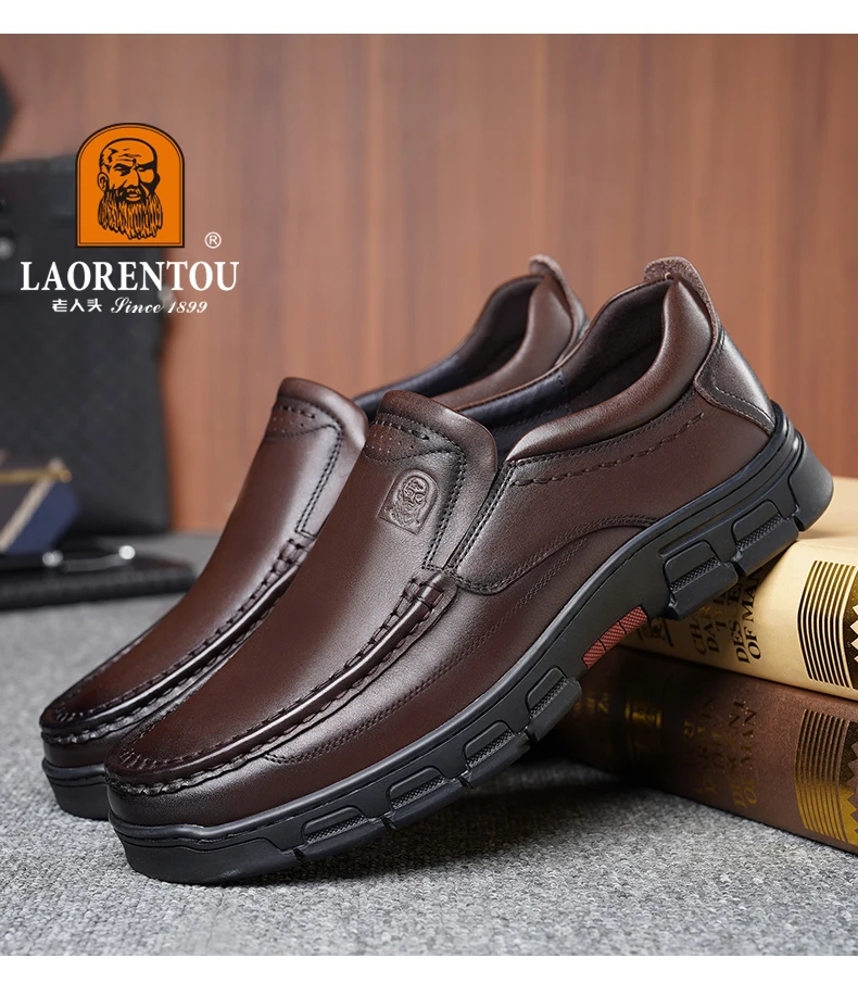 LAORENTOU cowhide breathable business casual leather shoes with thick soles and wear-resistant round