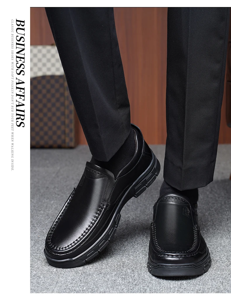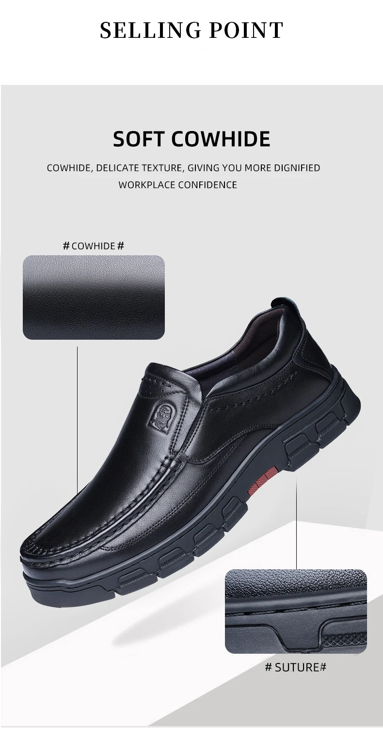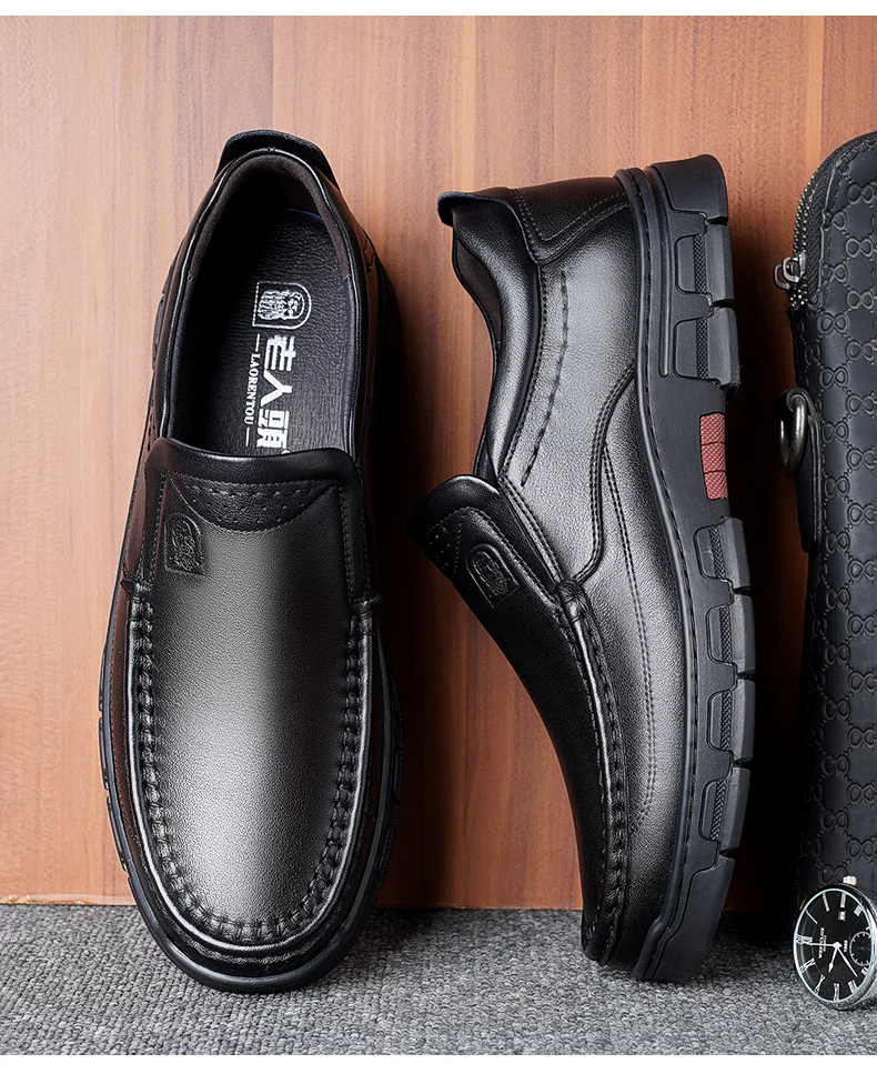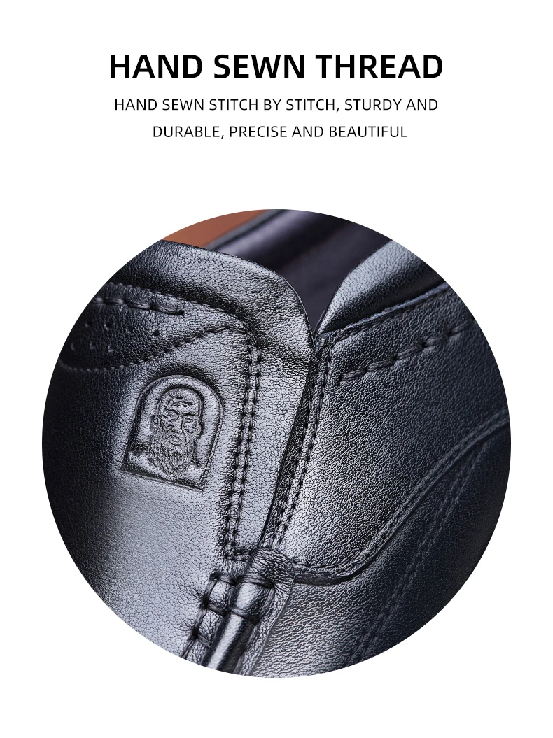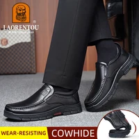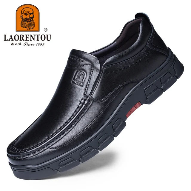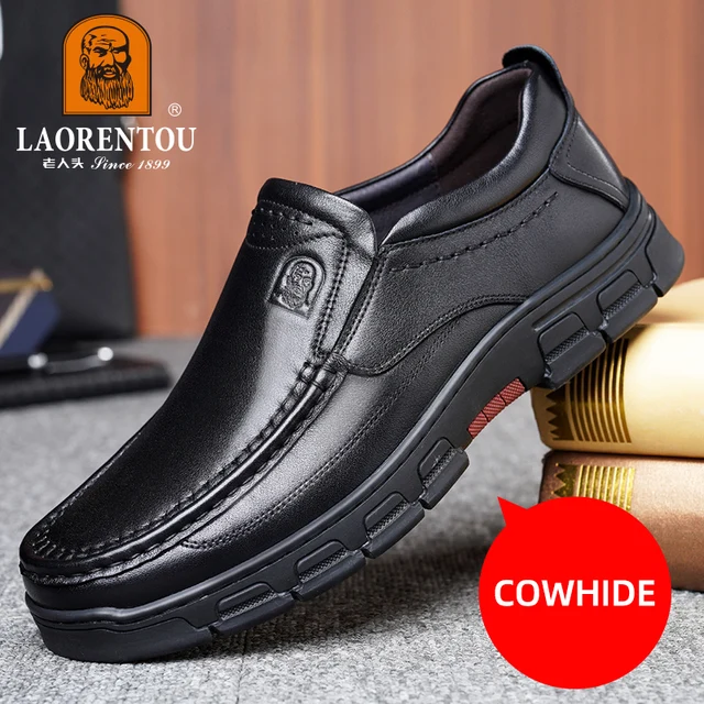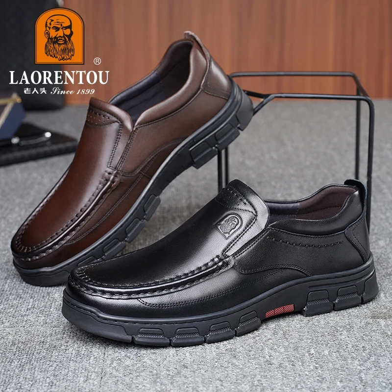 LAORENTOU cowhide breathable business casual leather shoes with thick soles and wear-resistant round
