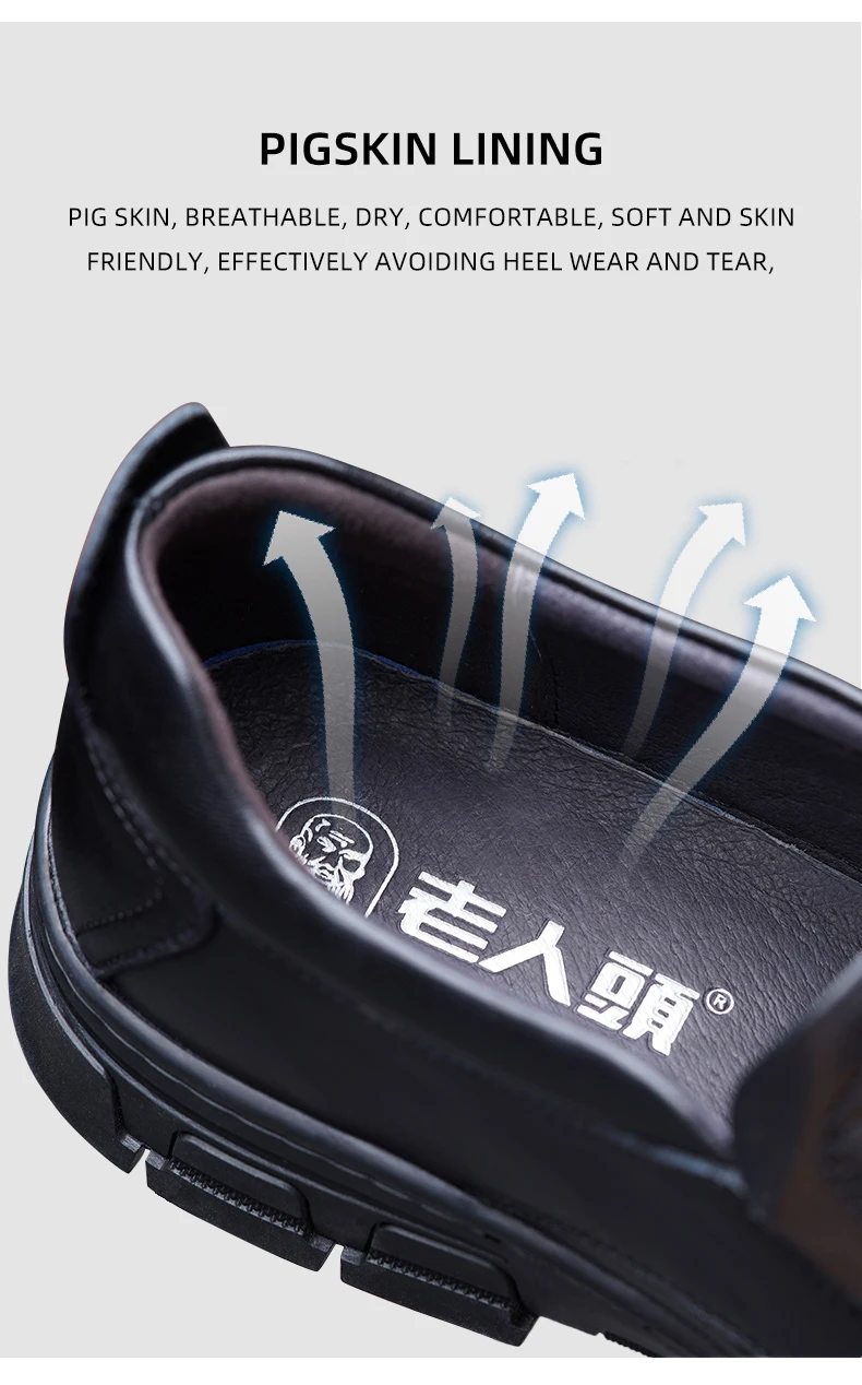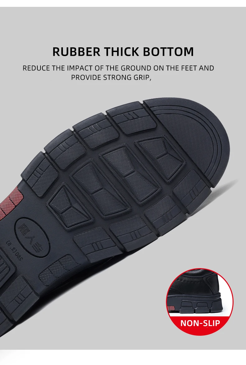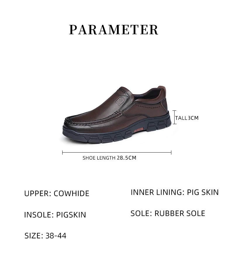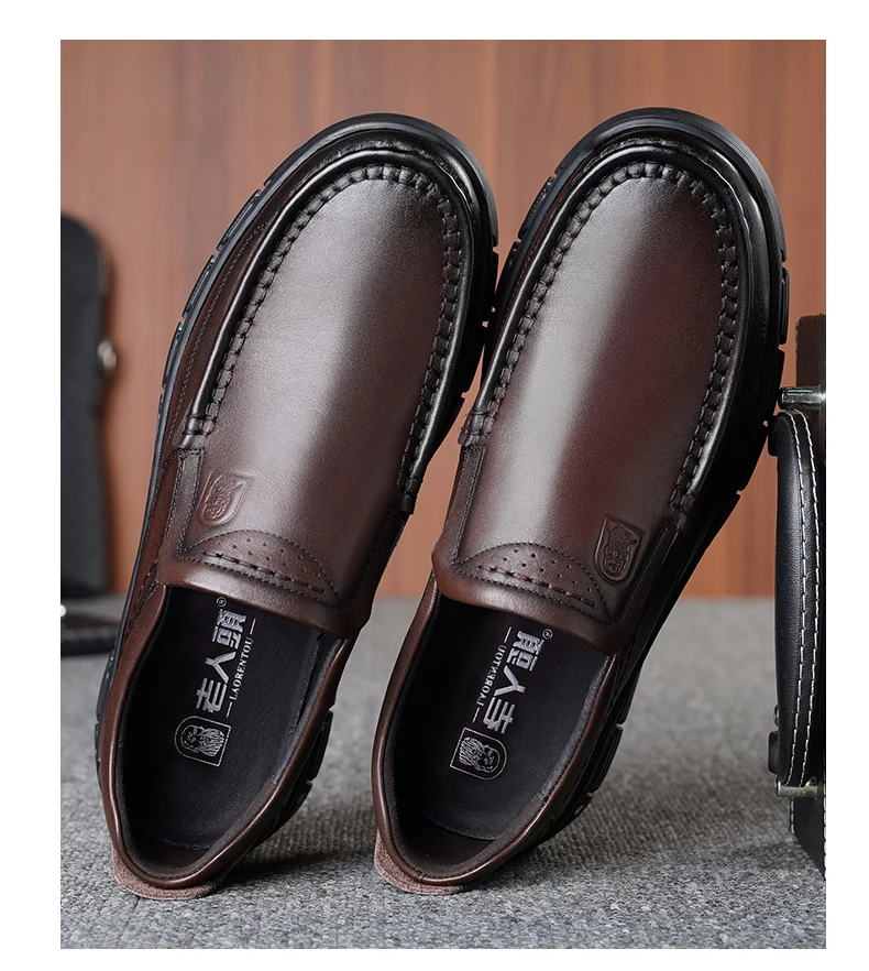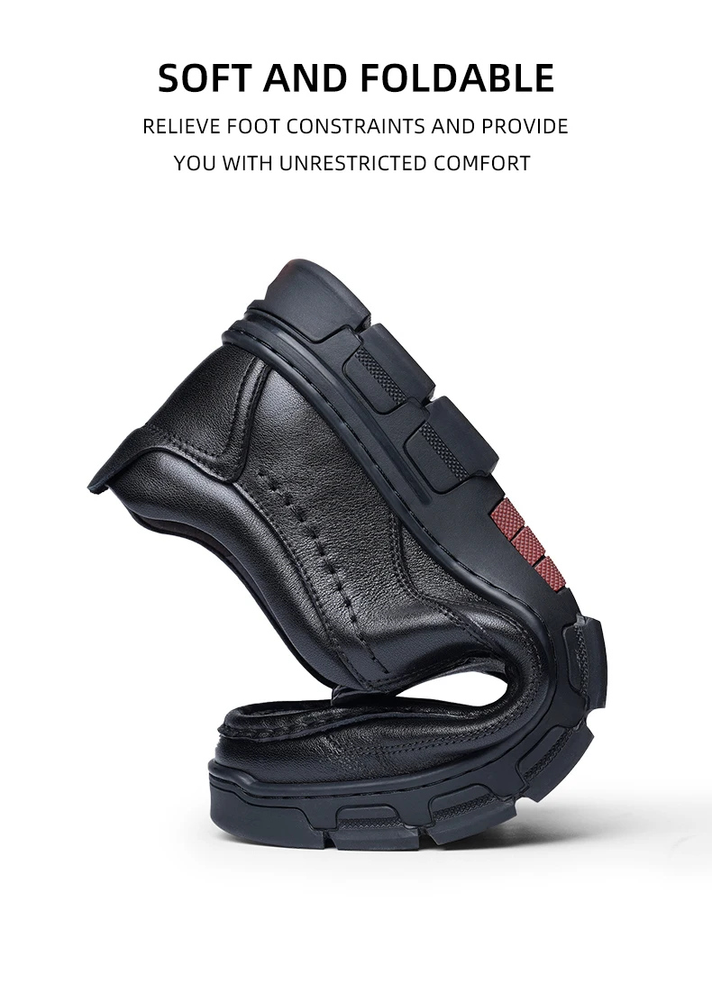 LAORENTOU cowhide breathable business casual leather shoes with thick soles and wear-resistant round