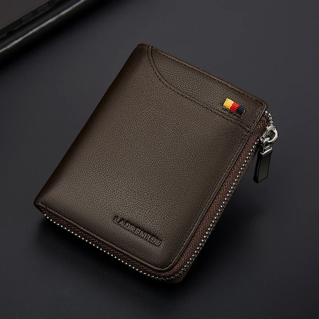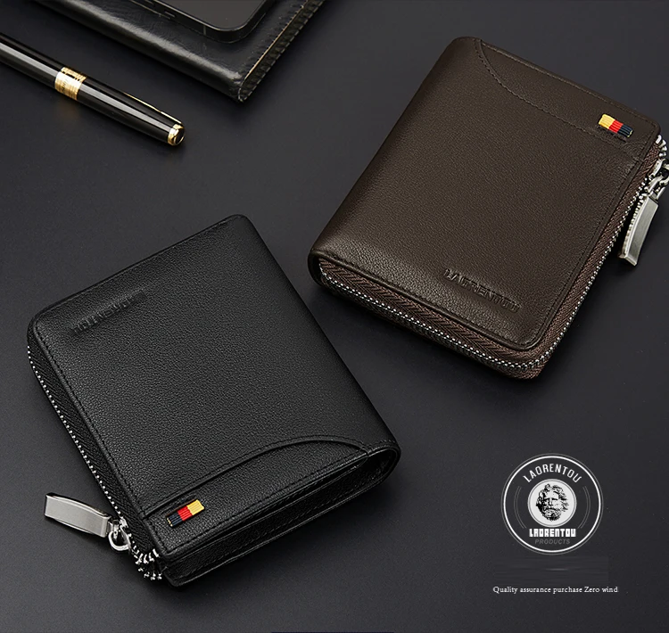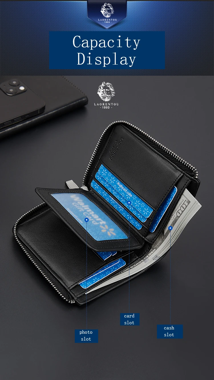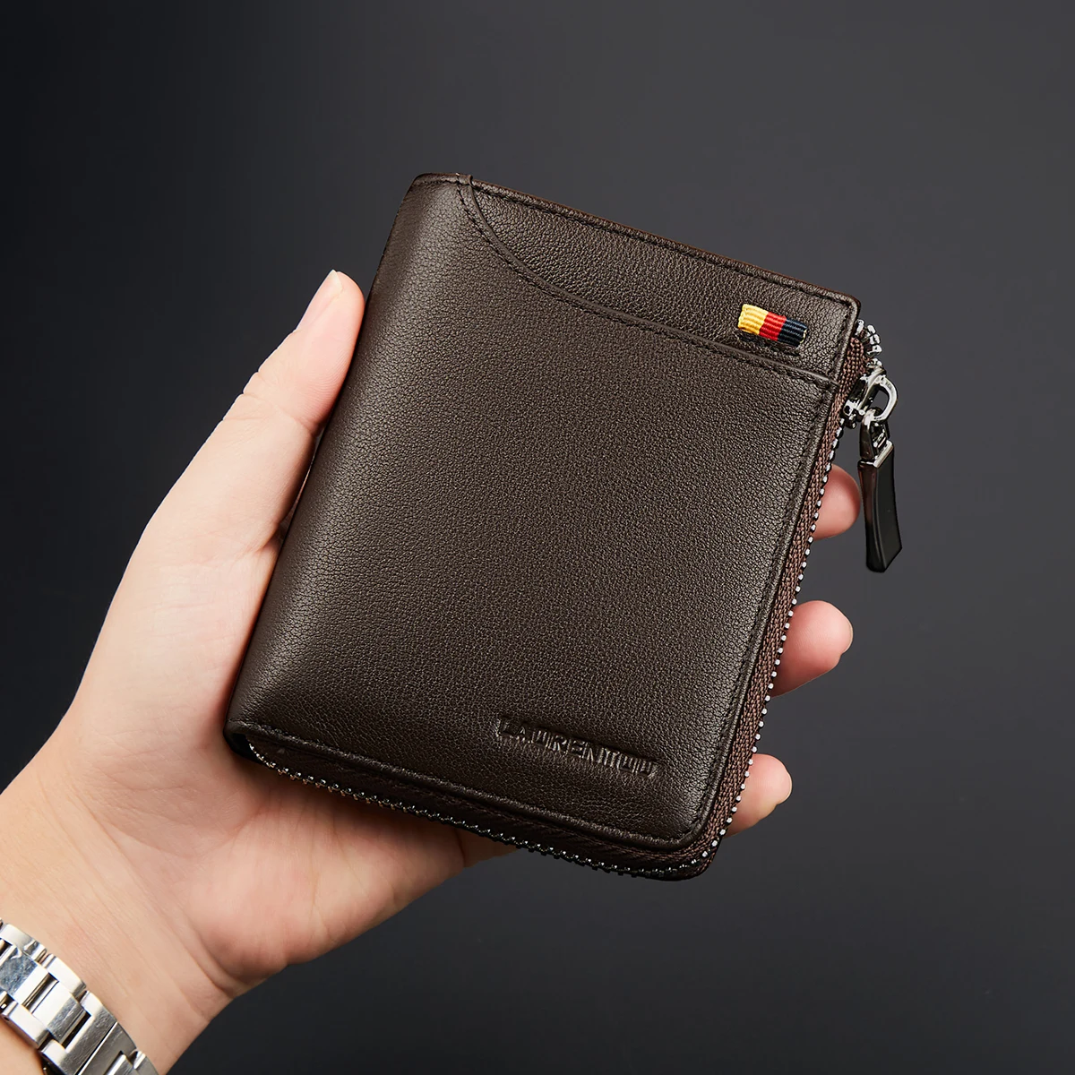 Dante Men's Leather Wallet RFID Anti-theft Brush Head Layer Cowhide Retro Casual Vertical Multi-Function Money Bag Money Clips