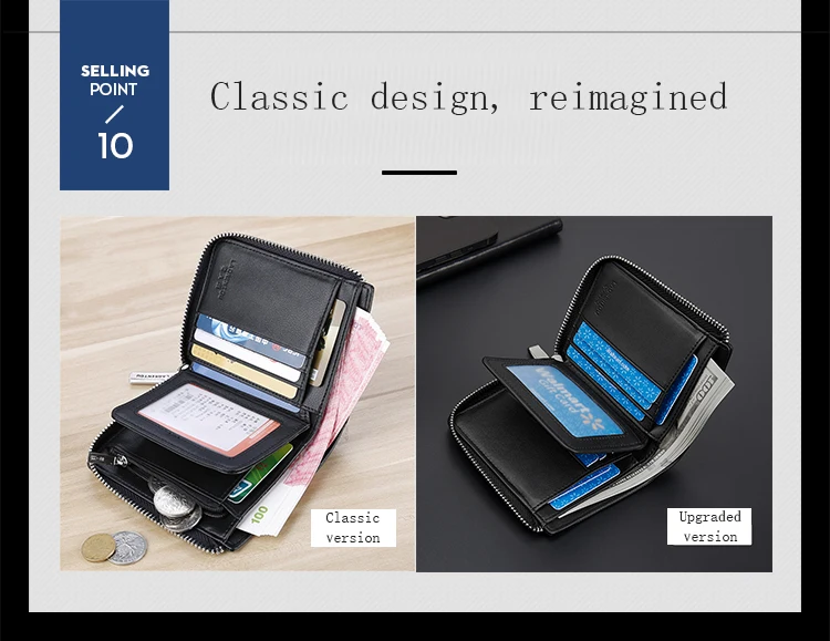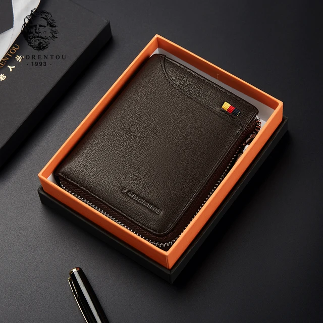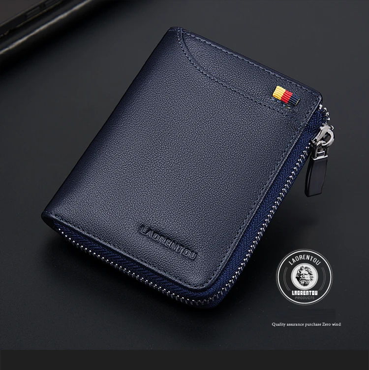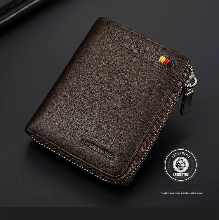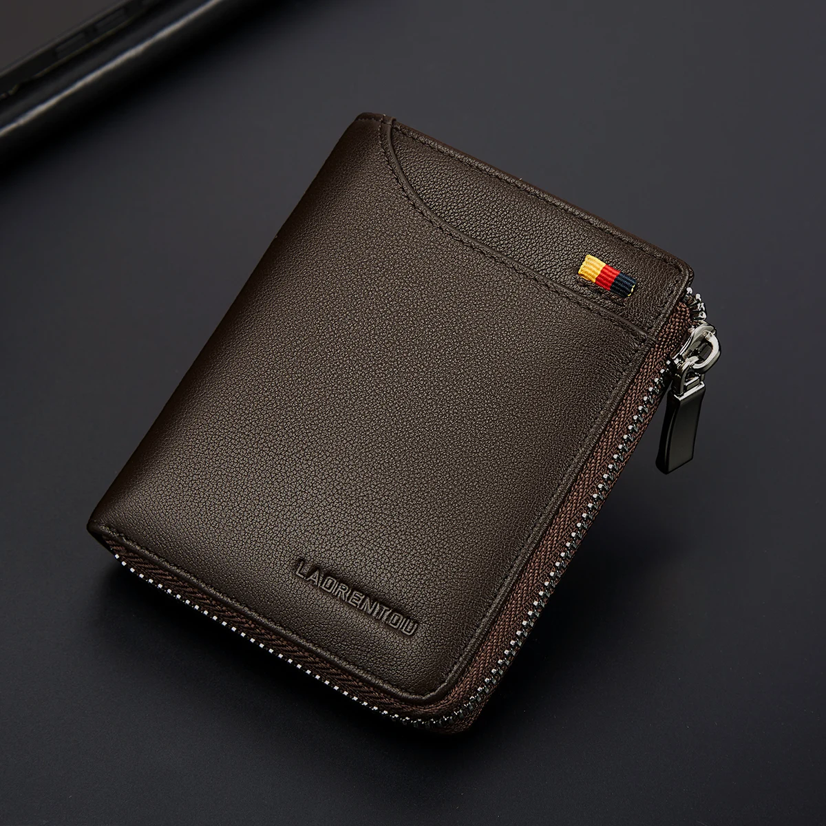 Dante Men's Leather Wallet RFID Anti-theft Brush Head Layer Cowhide Retro Casual Vertical Multi-Function Money Bag Money Clips