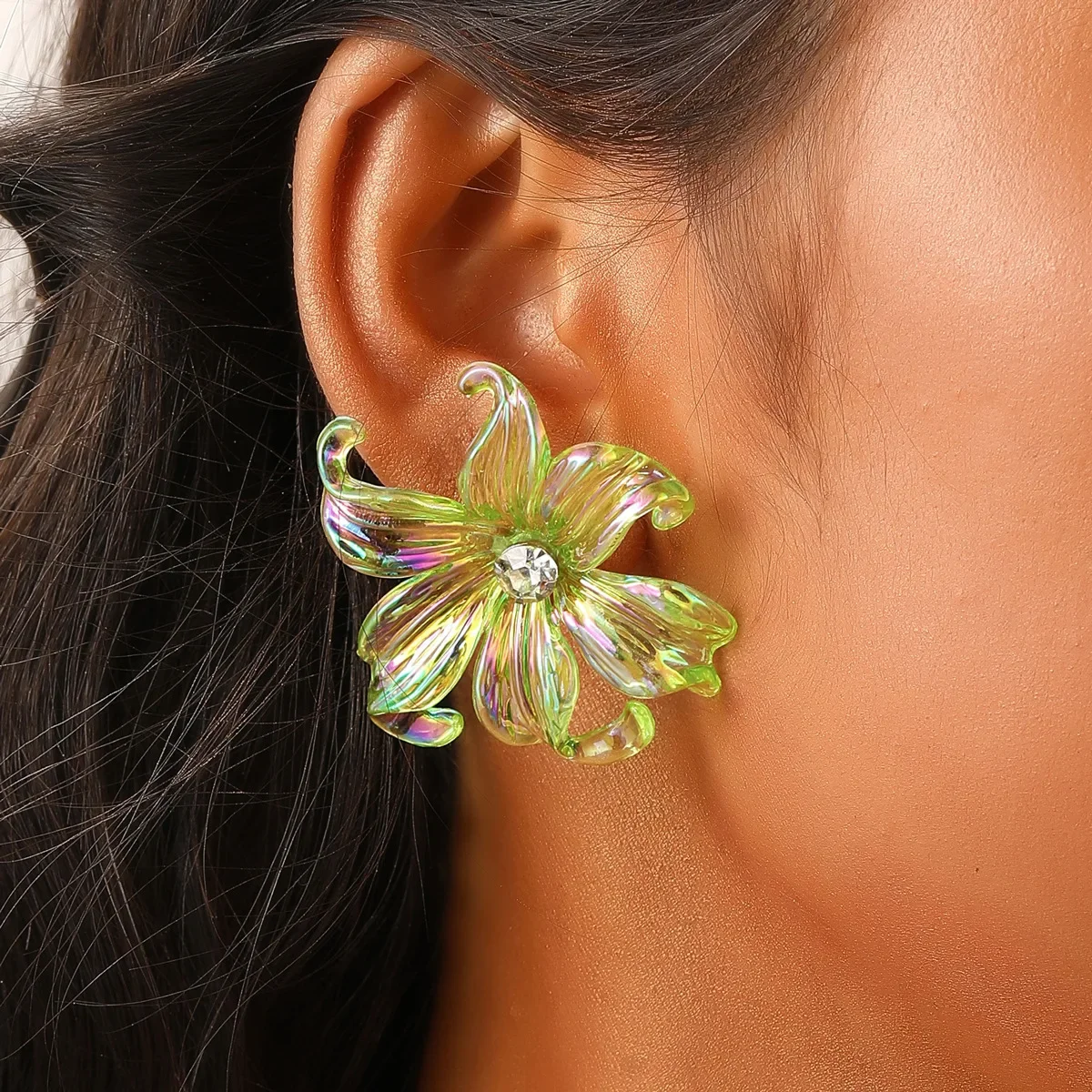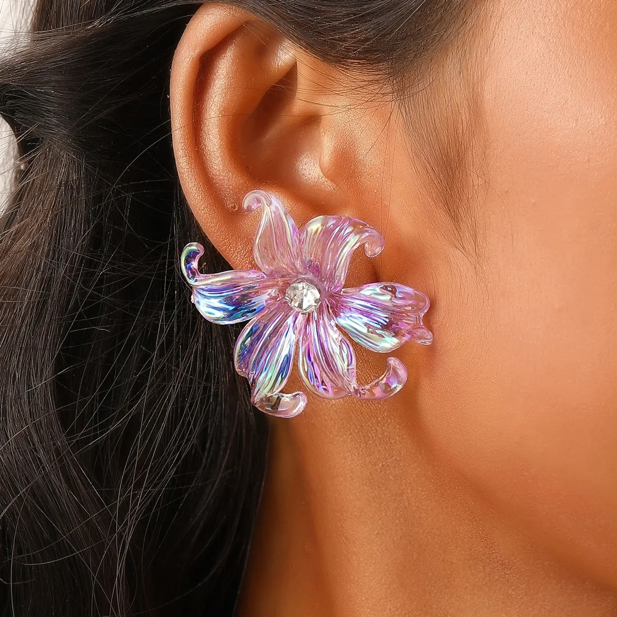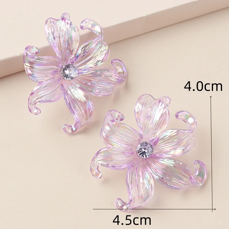 Price range: 1.70$ through 2.27$Large Big Flower Iris Crystal Stud Earring for Women Purple Pink Green Color Female Sweet Jewelry Wedding