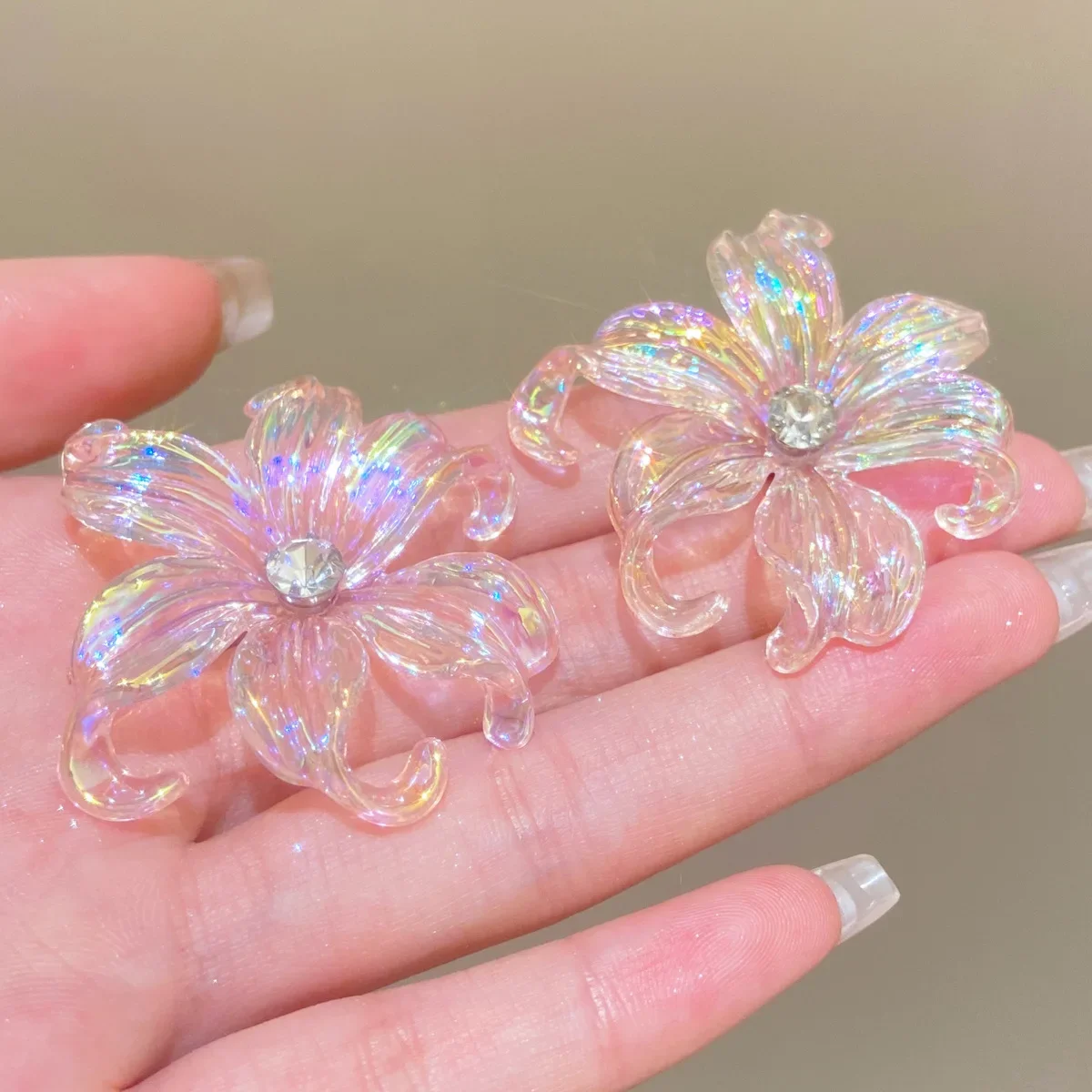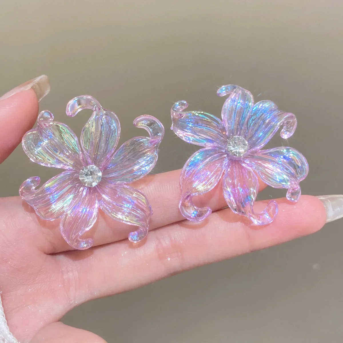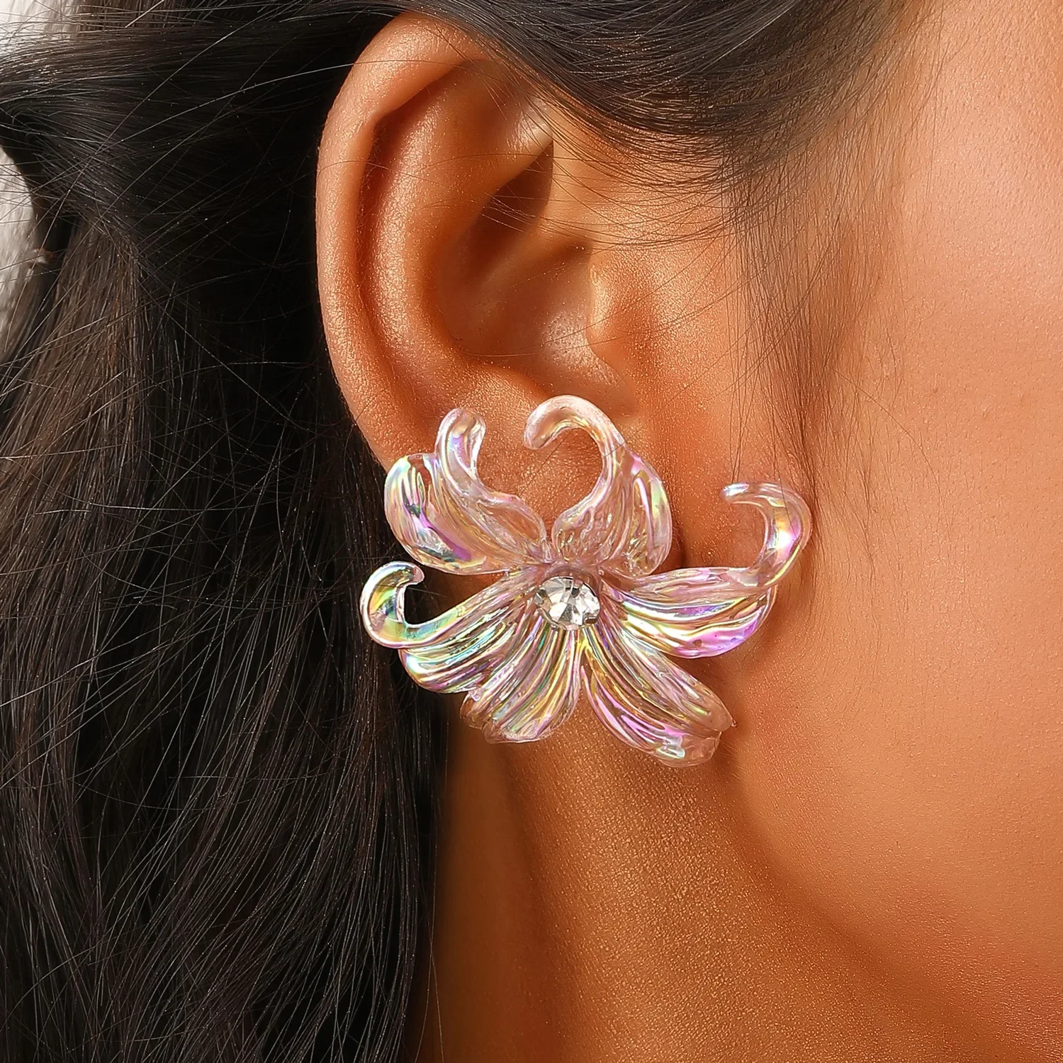 Price range: 1.70$ through 2.27$Large Big Flower Iris Crystal Stud Earring for Women Purple Pink Green Color Female Sweet Jewelry Wedding