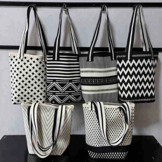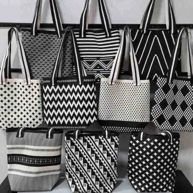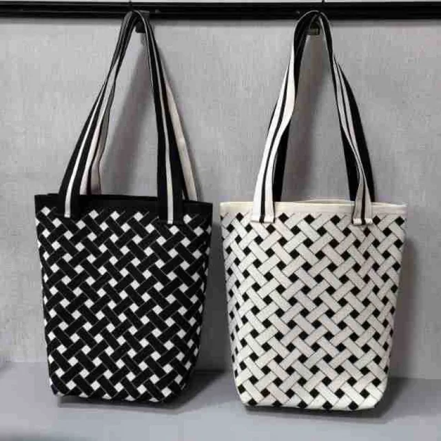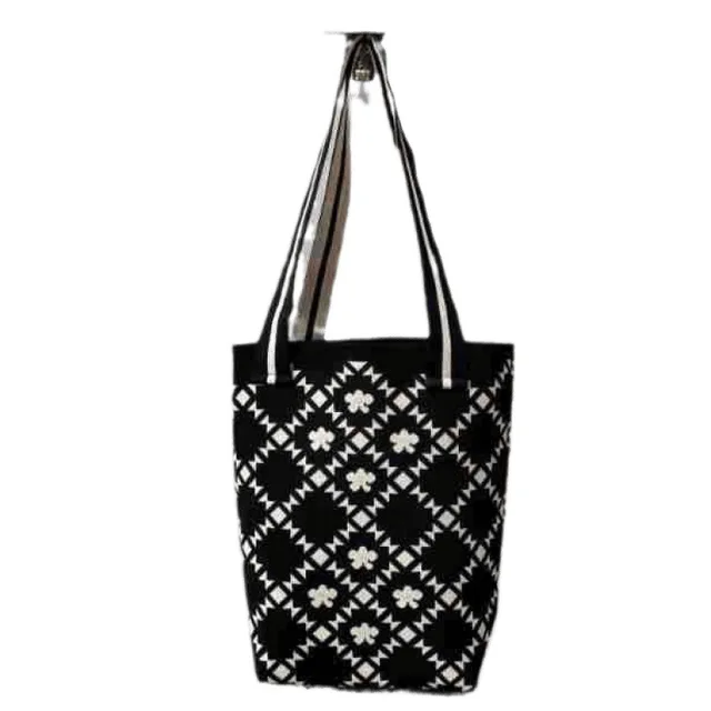 Featuring a distinctive knitted pattern, this bag stands out with its intricate detailing, including letters, flowers, hearts, and more.