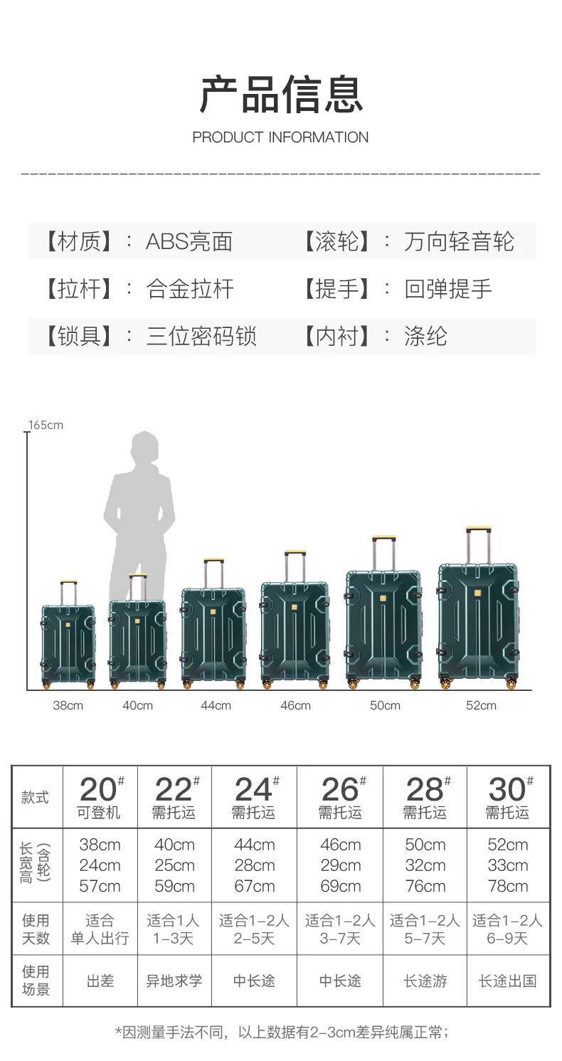 Made from high-quality ABS, the suitcase is lightweight yet sturdy, perfect for frequent travelers.