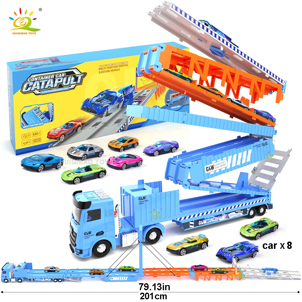 Large Inertia Track Truck Set | Foldable Track Storage | Launching Alloy Flying Car | Competition Game