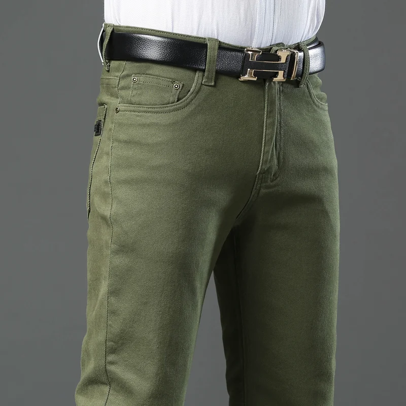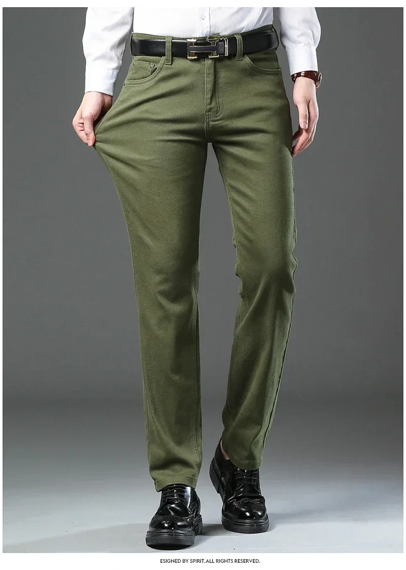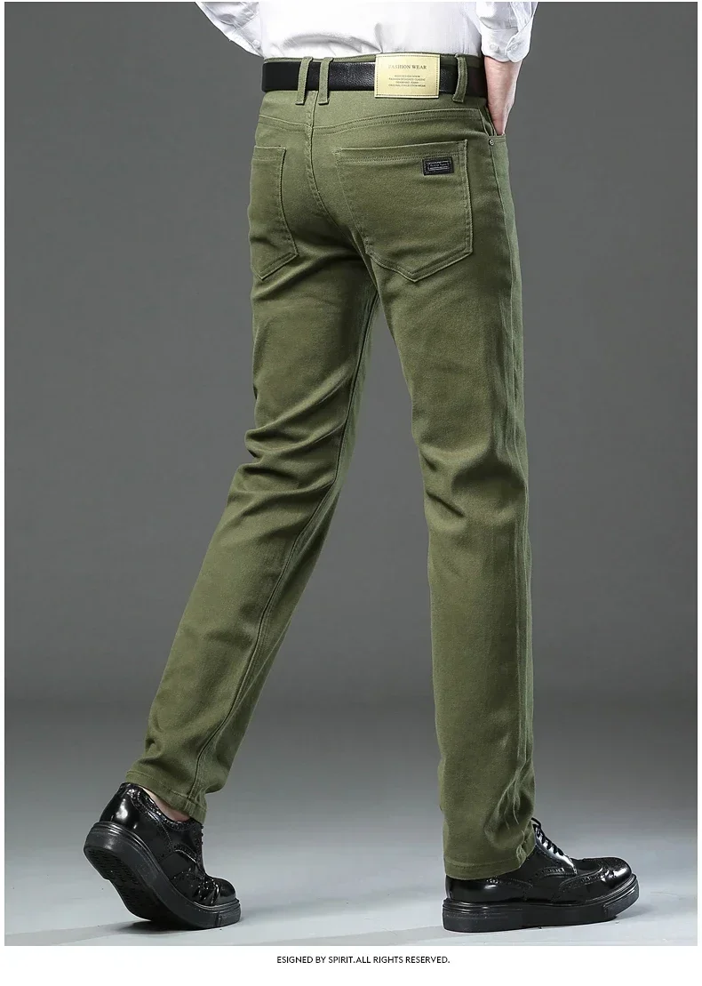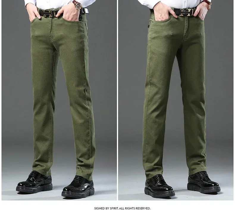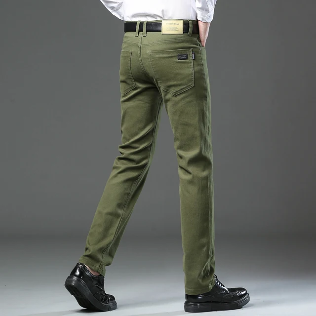 Large Size 42 44 Autumn 98% Cotton Men’s Stretch Slim Jeans ArmyGreen Soft Comfortable Casual Straight