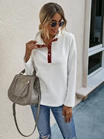 Loose Long Sleeve round Neck Knitted Hoodie Women Comfortable Casual Top Color Block Polyester Spandex Blend Mid-Length