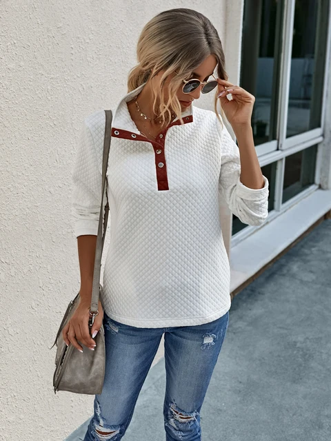 Large size autumn and winter new patchwork contrasting pocket lapel pullover hoodie for women