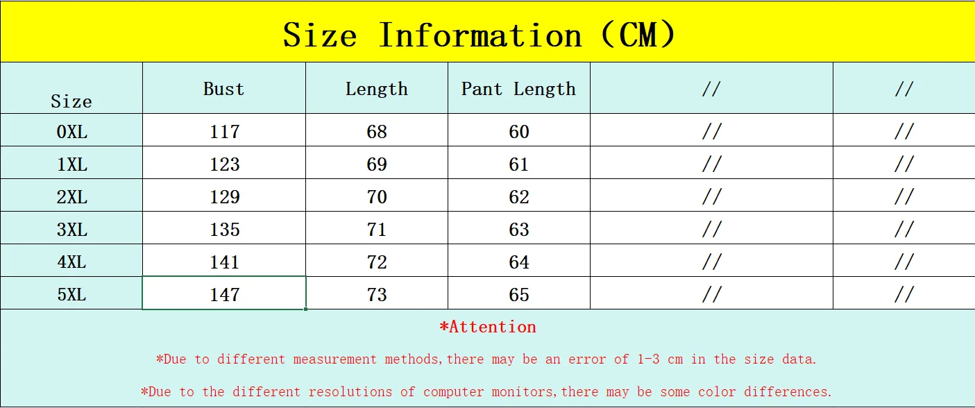| size_info | {"sizeInfoList":[{"length":{"cm":"117","inch":"46.06"},"size":"0XL","vid":23800842157},{"length":{"cm":"123","inch":"48.43"},"size":"1XL","vid":12668979},{"length":{"cm":"129","inch":"50.79"},"size":"2XL","vid":200000322},{"length":{"cm":"135","inch":"53.15"},"size":"3XL","vid":115781},{"length":{"cm":"141","inch":"55.51"},"size":"4XL","vid":200000990},{"length":{"cm":"147","inch":"57.87"},"size":"5XL","vid":200000991}]} |