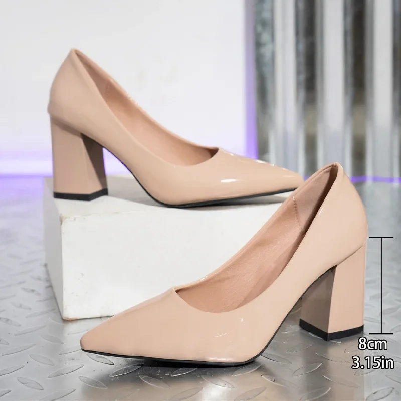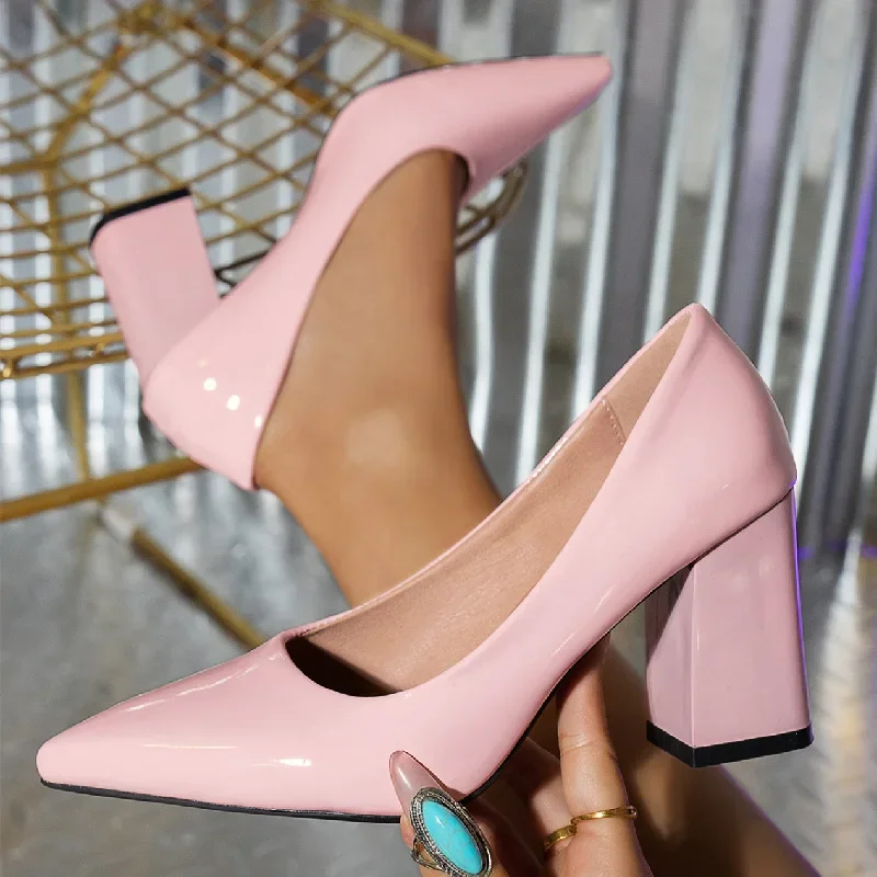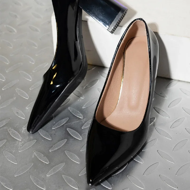 Large Size Fashionable Women’s High Heels Pointed Toe Low Cut Single Shoes Plastic Upgraded PU