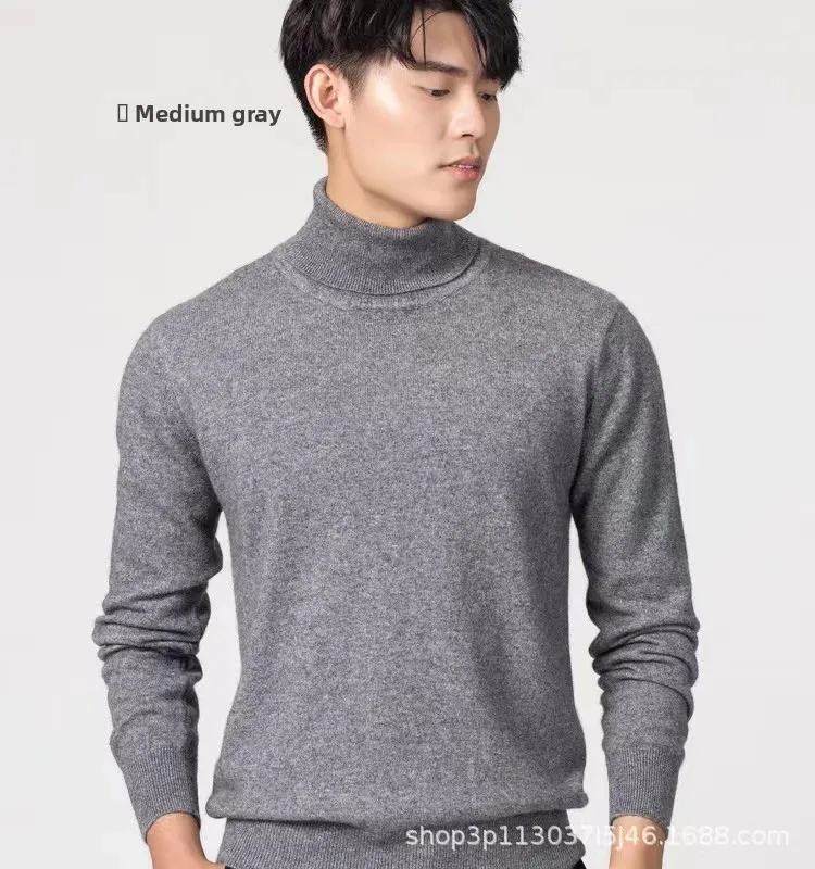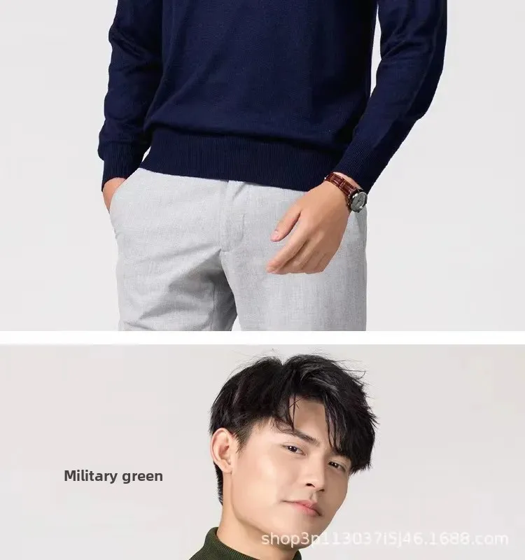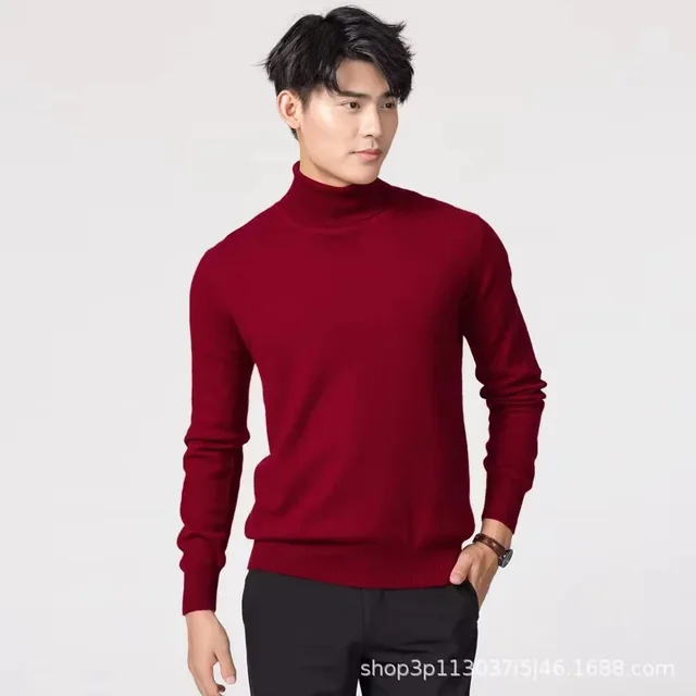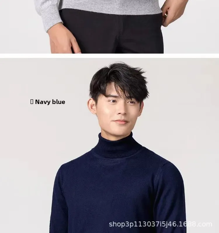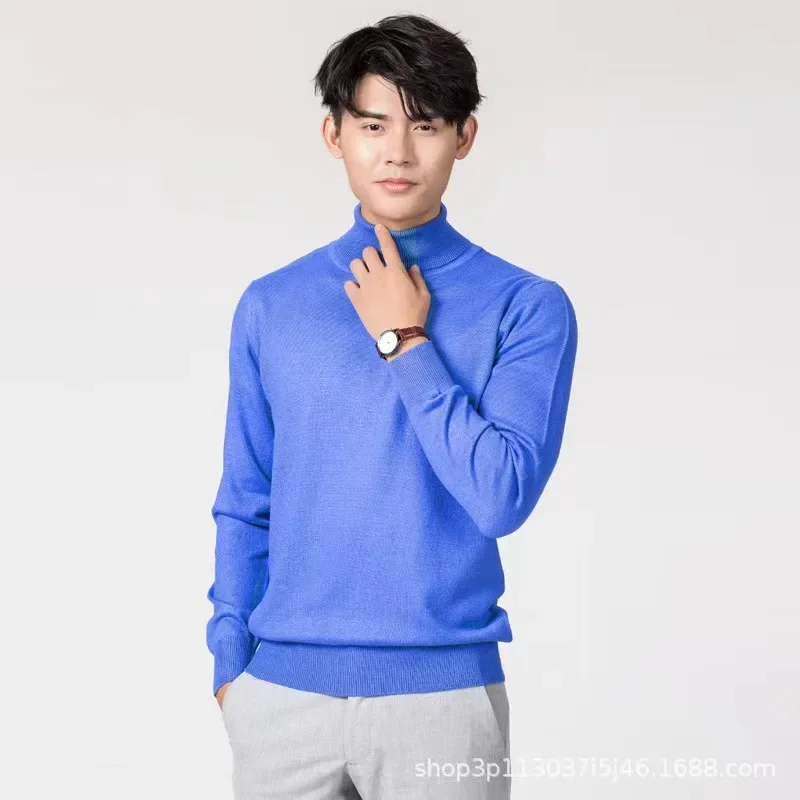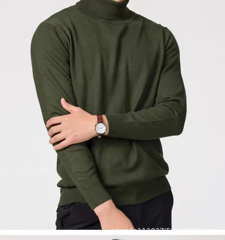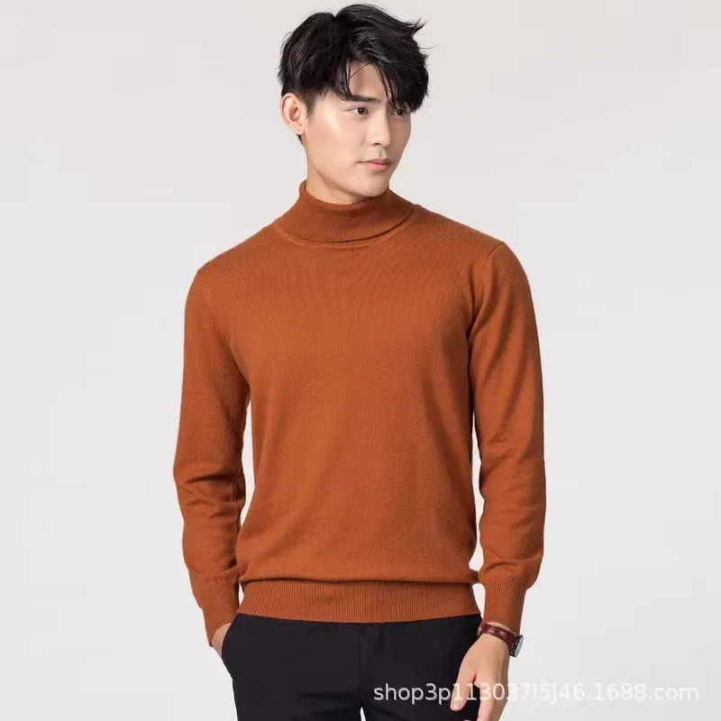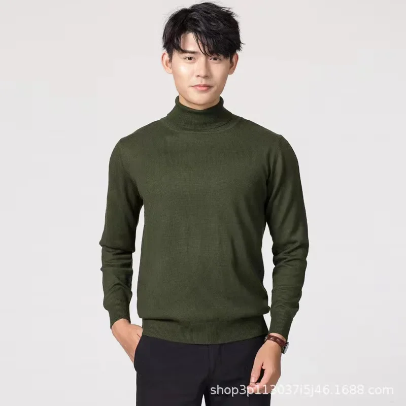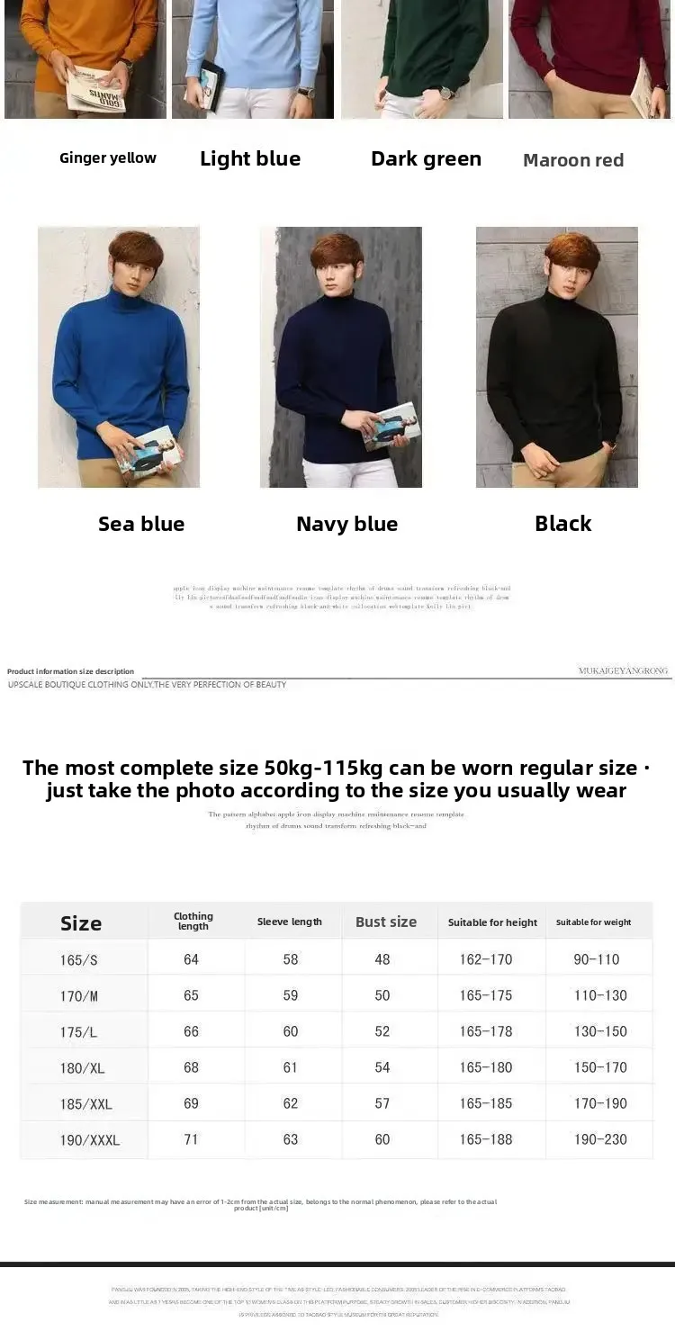 Large Size Men’s High Collar Knitwear Pure Color Wool Sweater Base Layer Shirt Spring Fashion Men’s