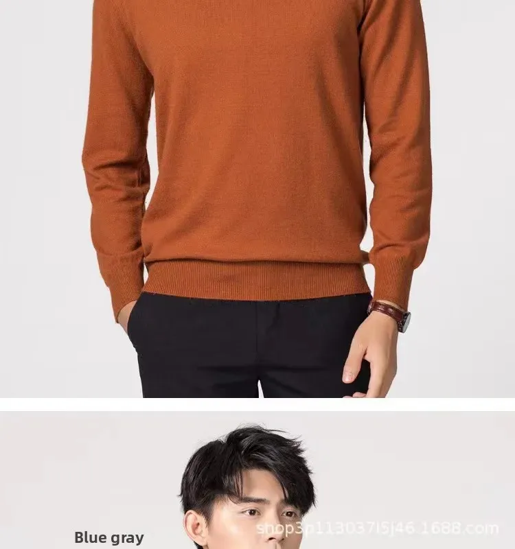 Large Size Men's High Collar Knitwear Pure Color Wool Sweater Base Layer Shirt Spring Fashion Men's Crew Neck Sweatshirt