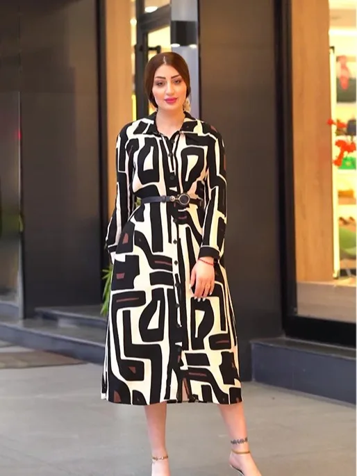 Large Size Muslim Dress Women Printed Shirt-collar Dress for Women Long Sleeve Morocco Party Dresses