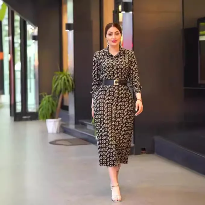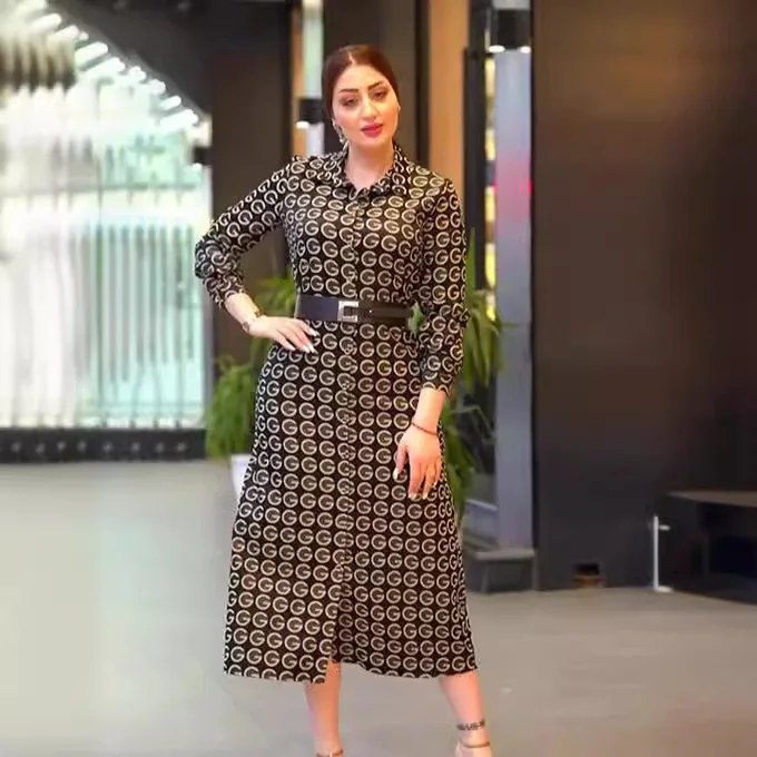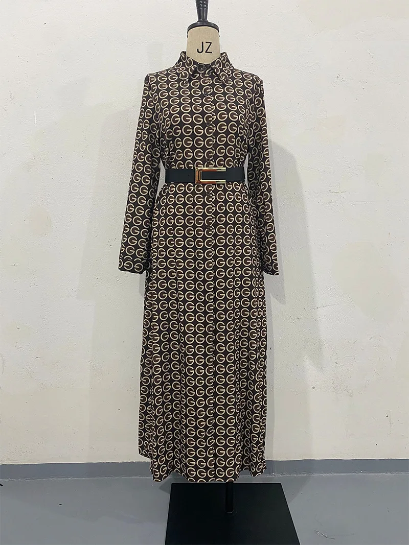 Large Size Muslim Dress Women Printed Shirt-collar Dress for Women Long Sleeve Morocco Party Dresses