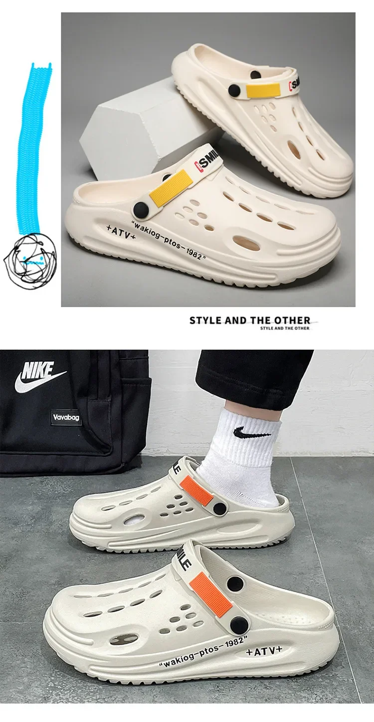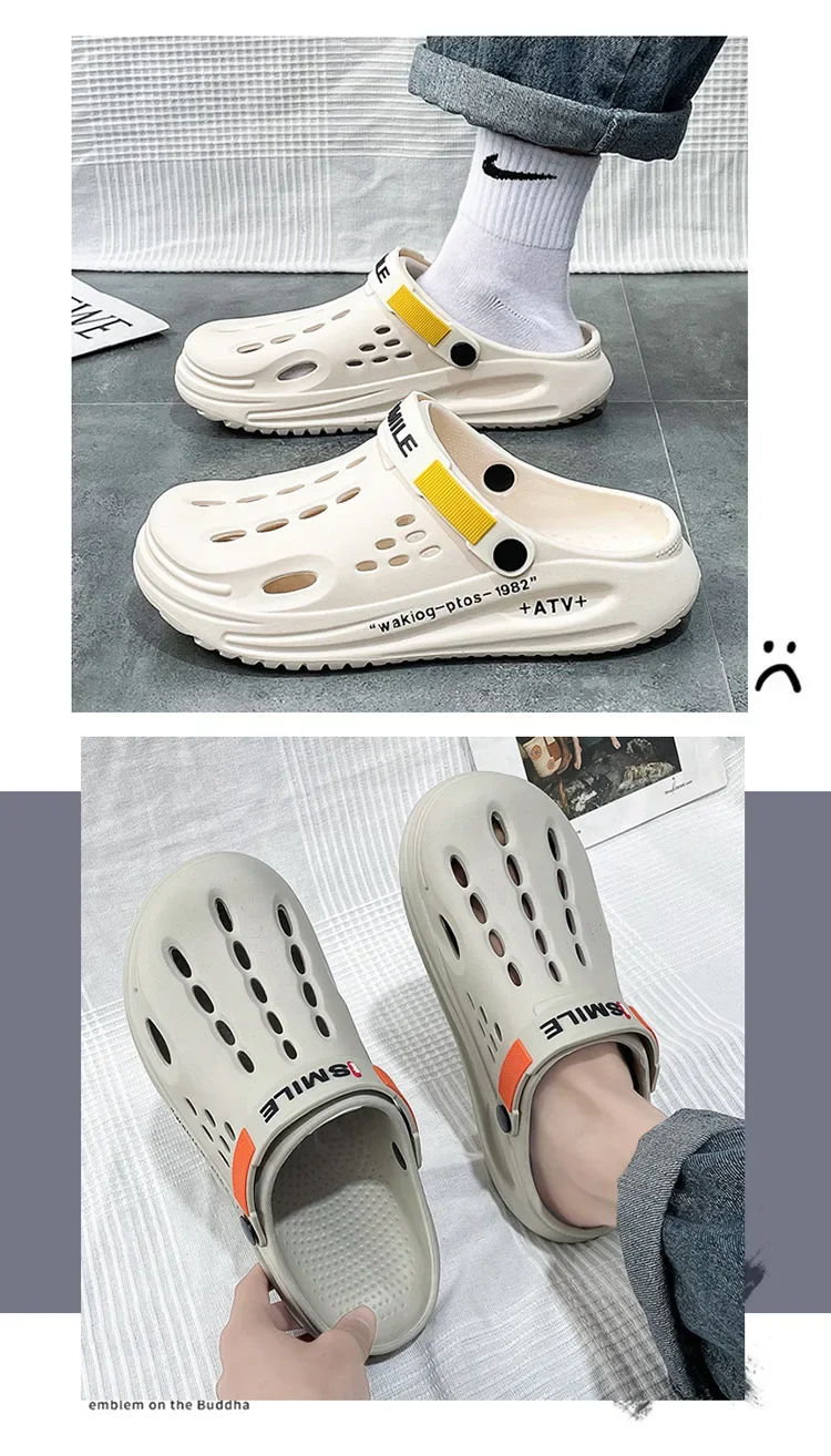 Large Size Unisex Summer Slippers Beach Sports Sandals Anti-Slip Clog Shoes Flat Head Thrown Away Feeling EVA Material