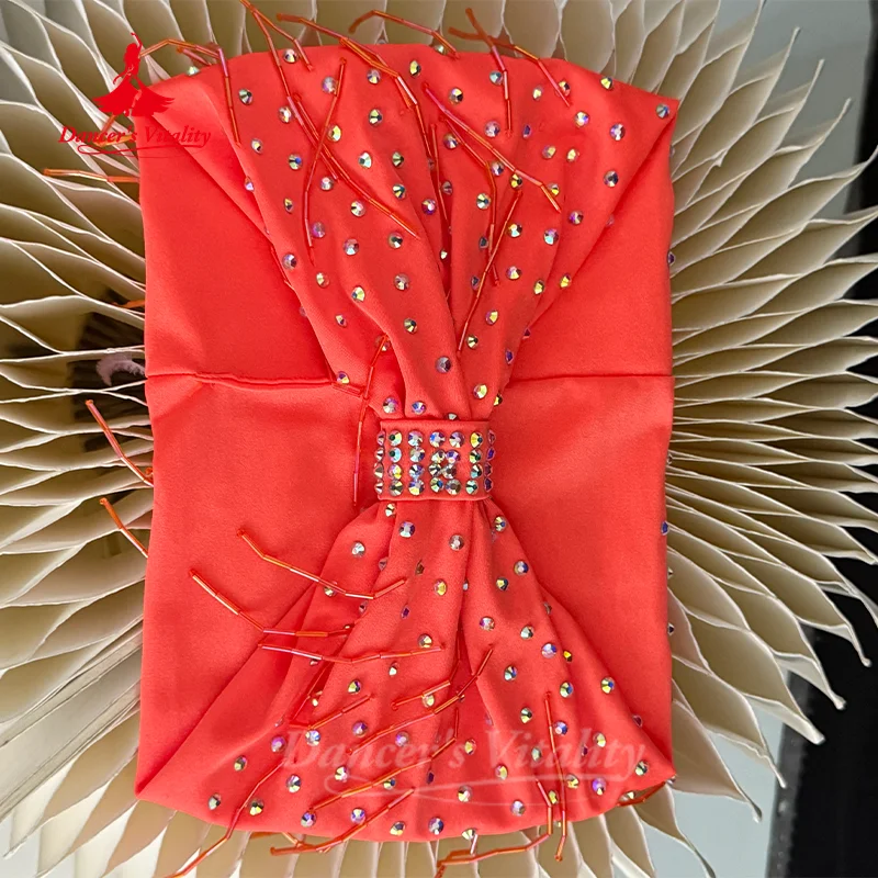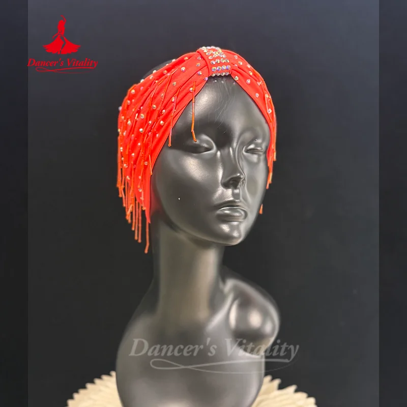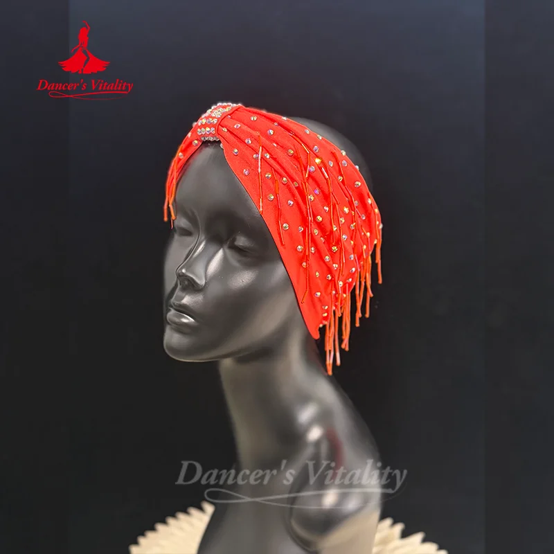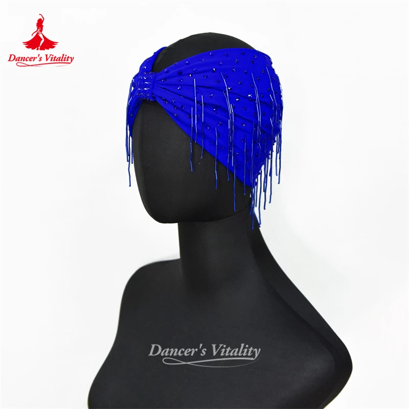 Latin Dance Performance Headwear for Women Custom AB Stones Tassels Elastic Headband Adult and Children Competition Accessories