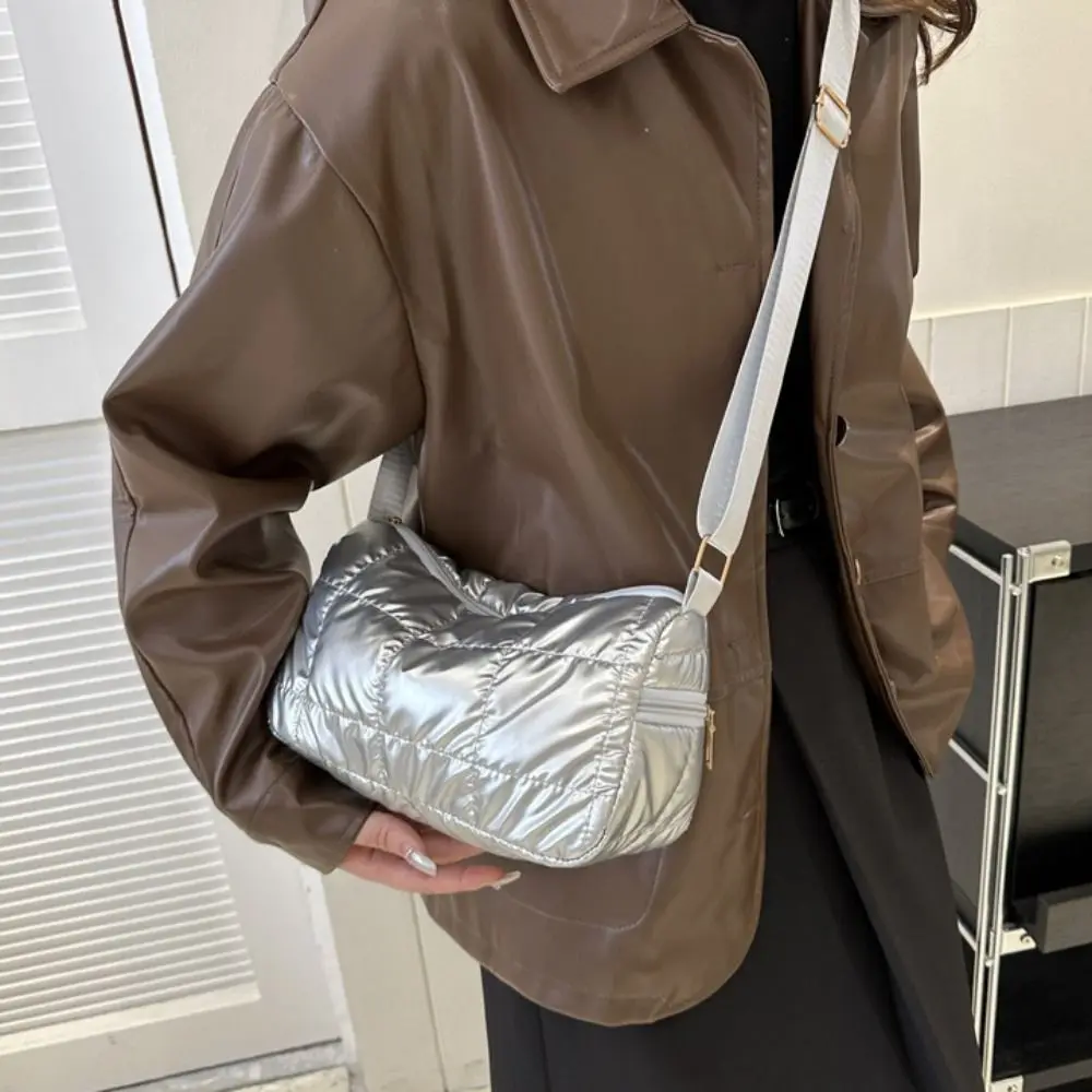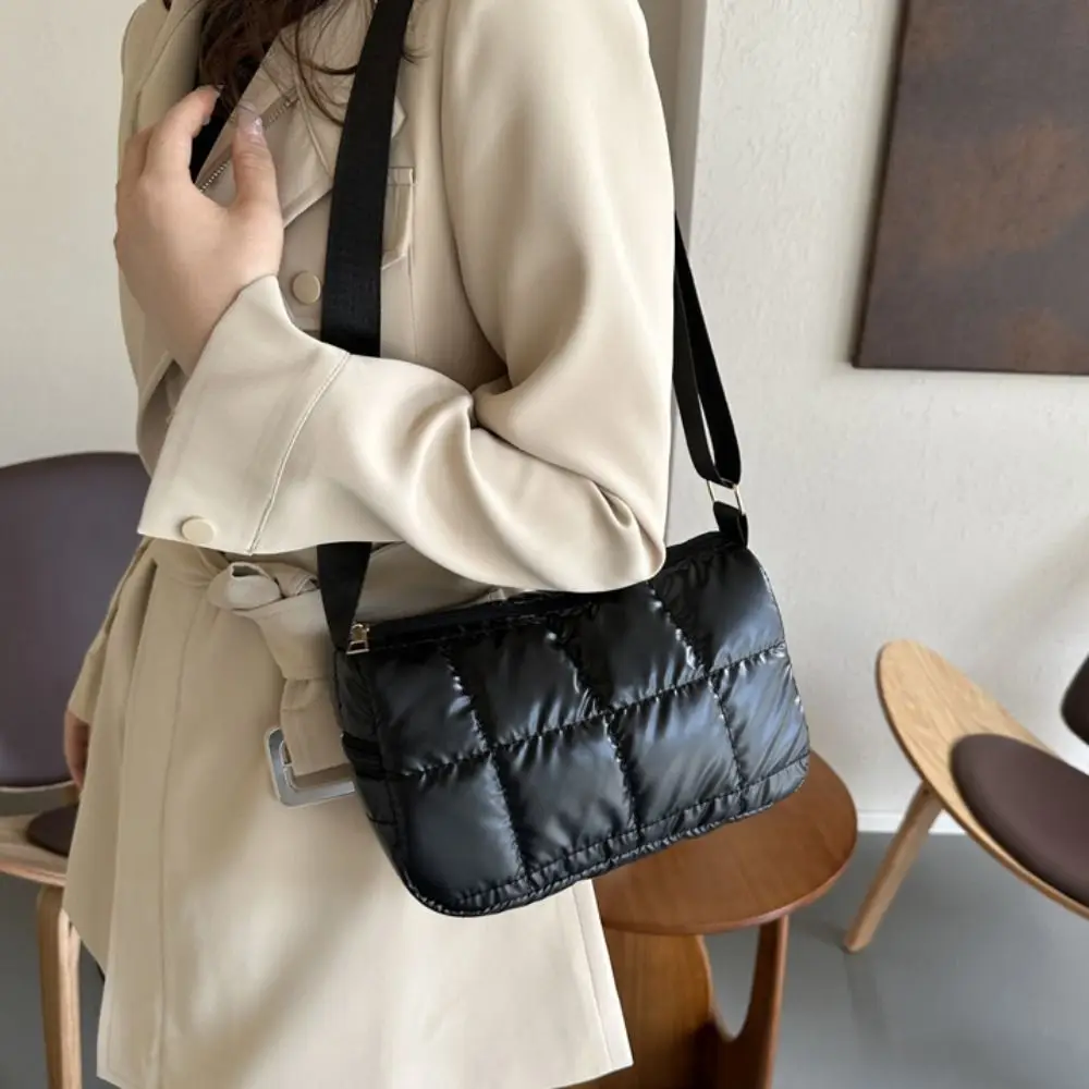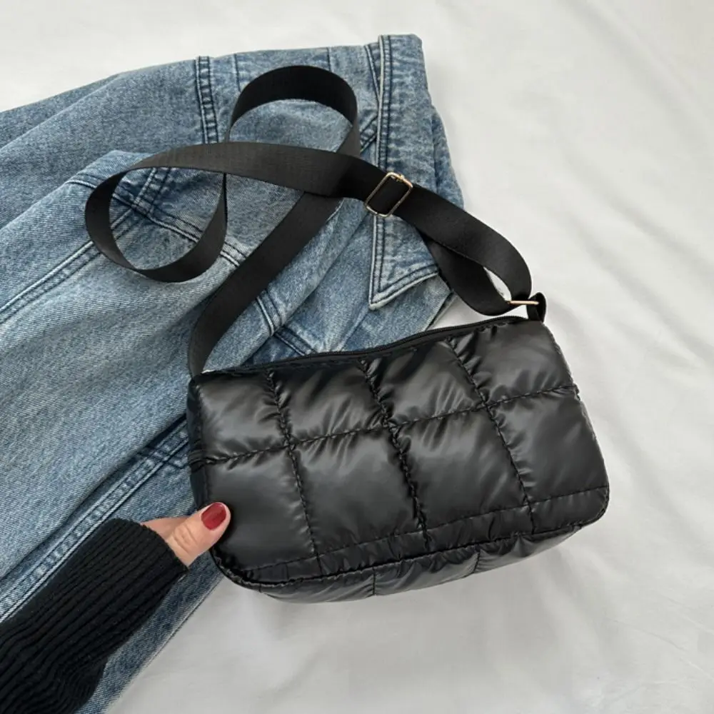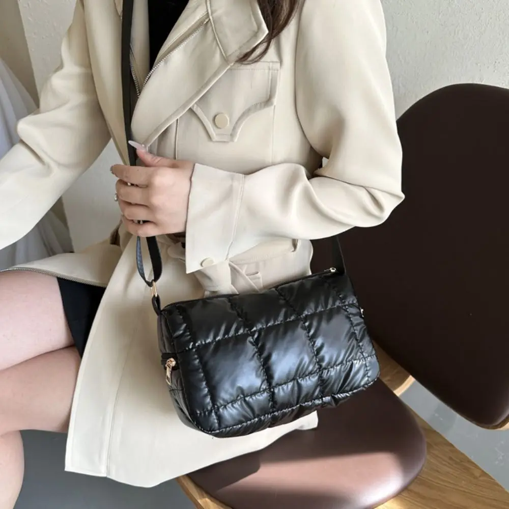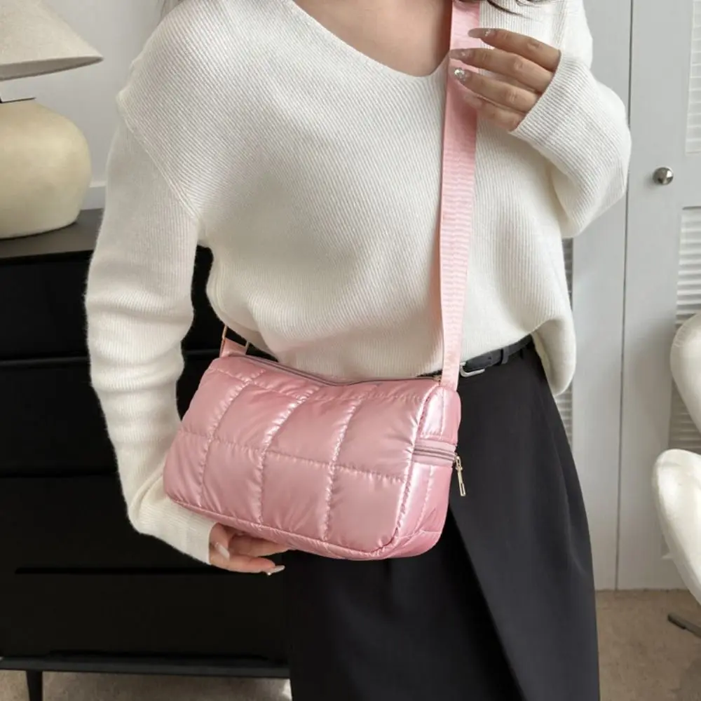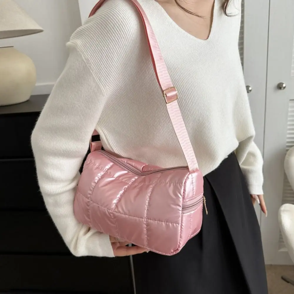 Lattice Space Cotton Crossbody Bag Korean Style Pleated Quilted Shoulder Bag Lightweight Oxford Padded Crossbody Bag Daily